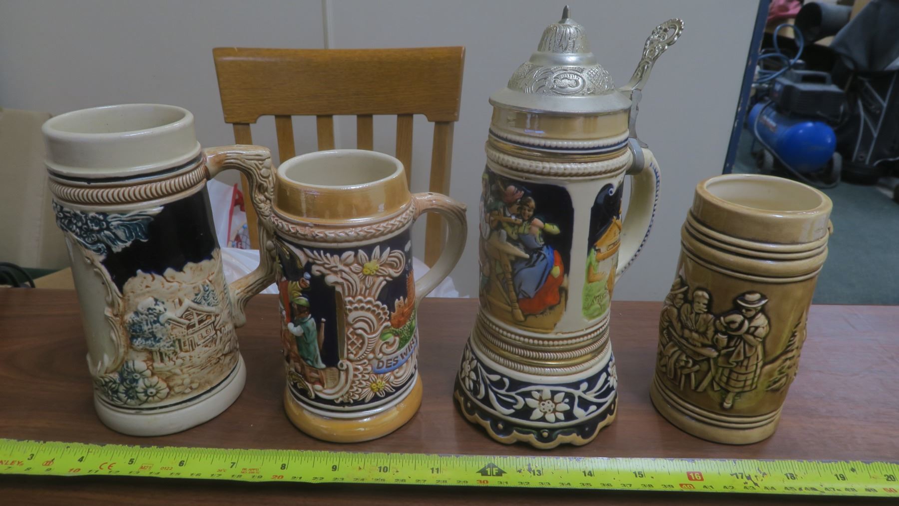 4 Beer Steins - 3 made in Germany, 1 of which is also music box