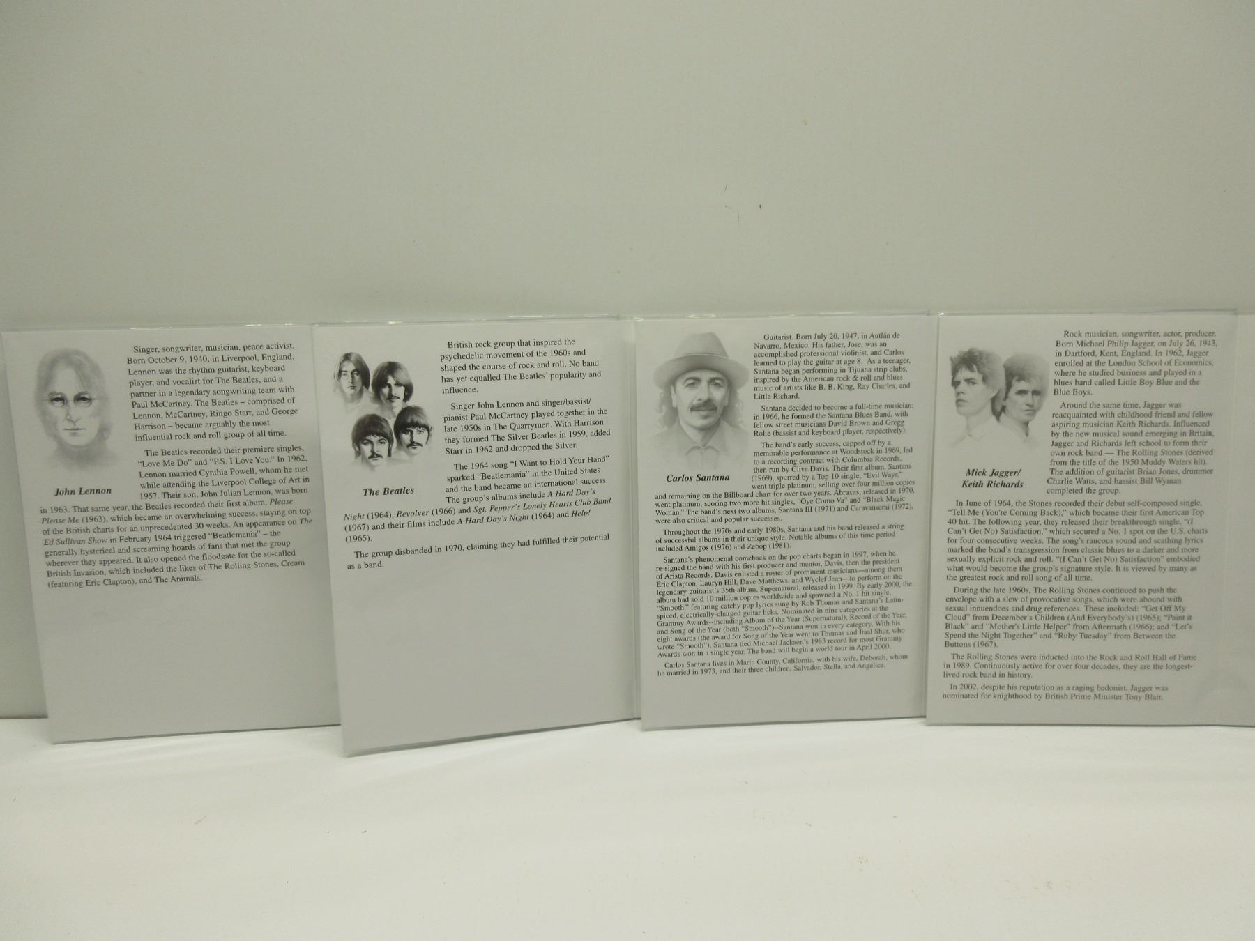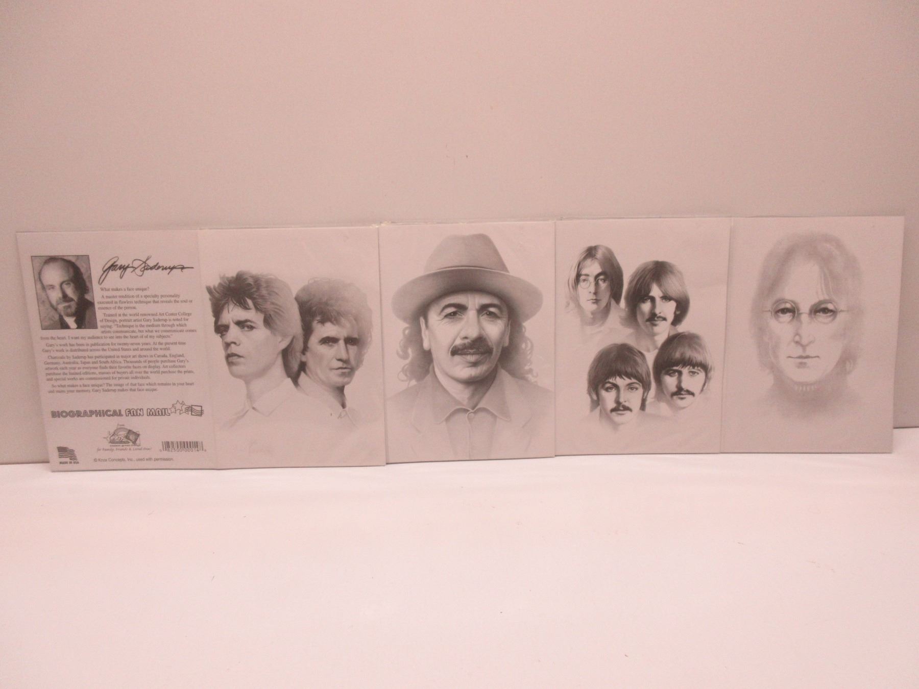 4 Biographical Fan Mail Card by Gary Saderup - Carlos Santana, Mick Jagger/Keith Richards, The Beatles, John Lennon