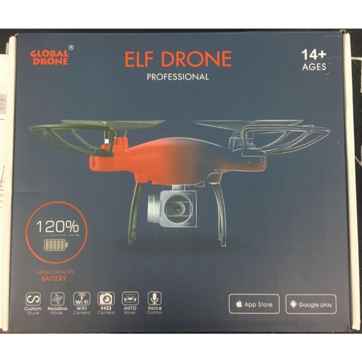 4 Blade Professional Elf Drone With Camera. Drone Comes Equipped With Headless Mode, Custom Route, WiFi Camera, HD Camera, Auto Hover, Voice Mode & Is Tied With App Store & Google Play. View Photos For Further Details. Â