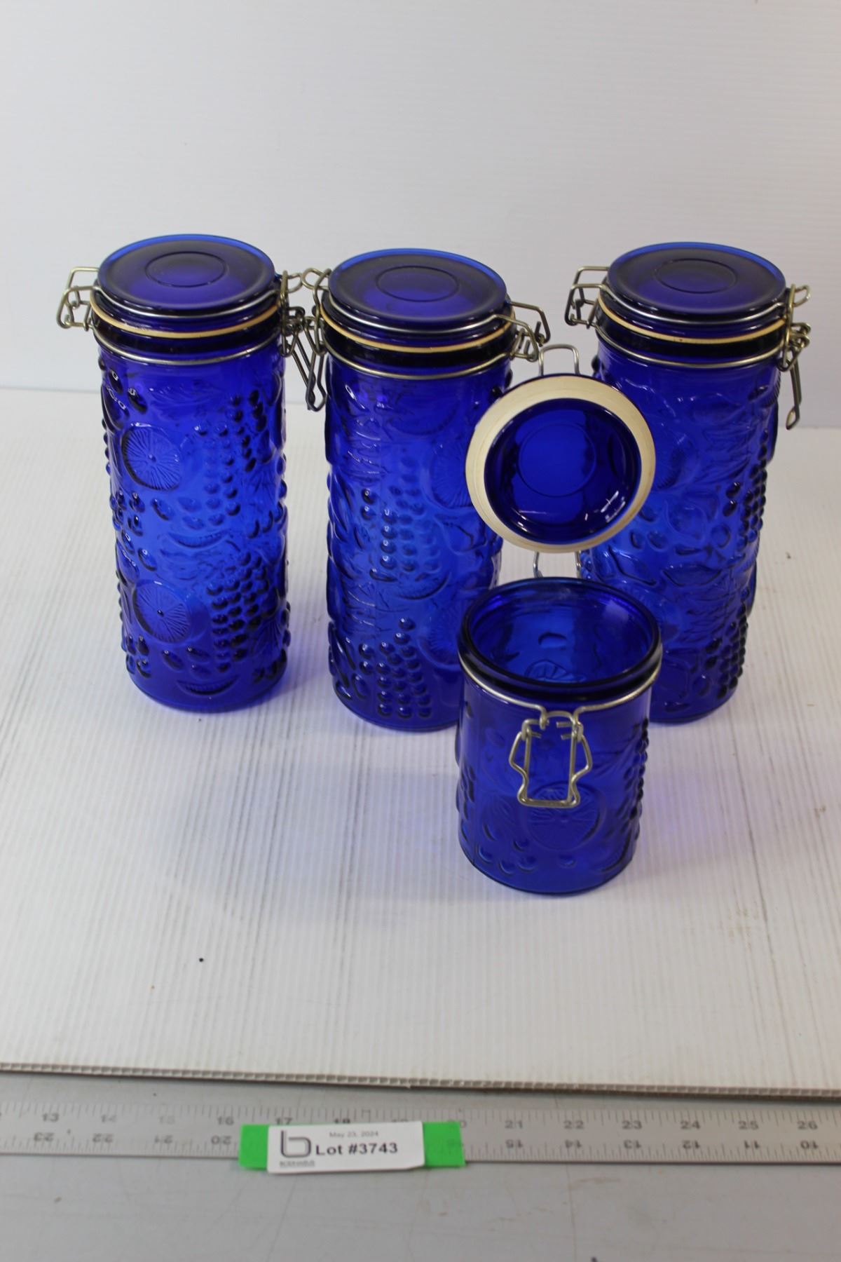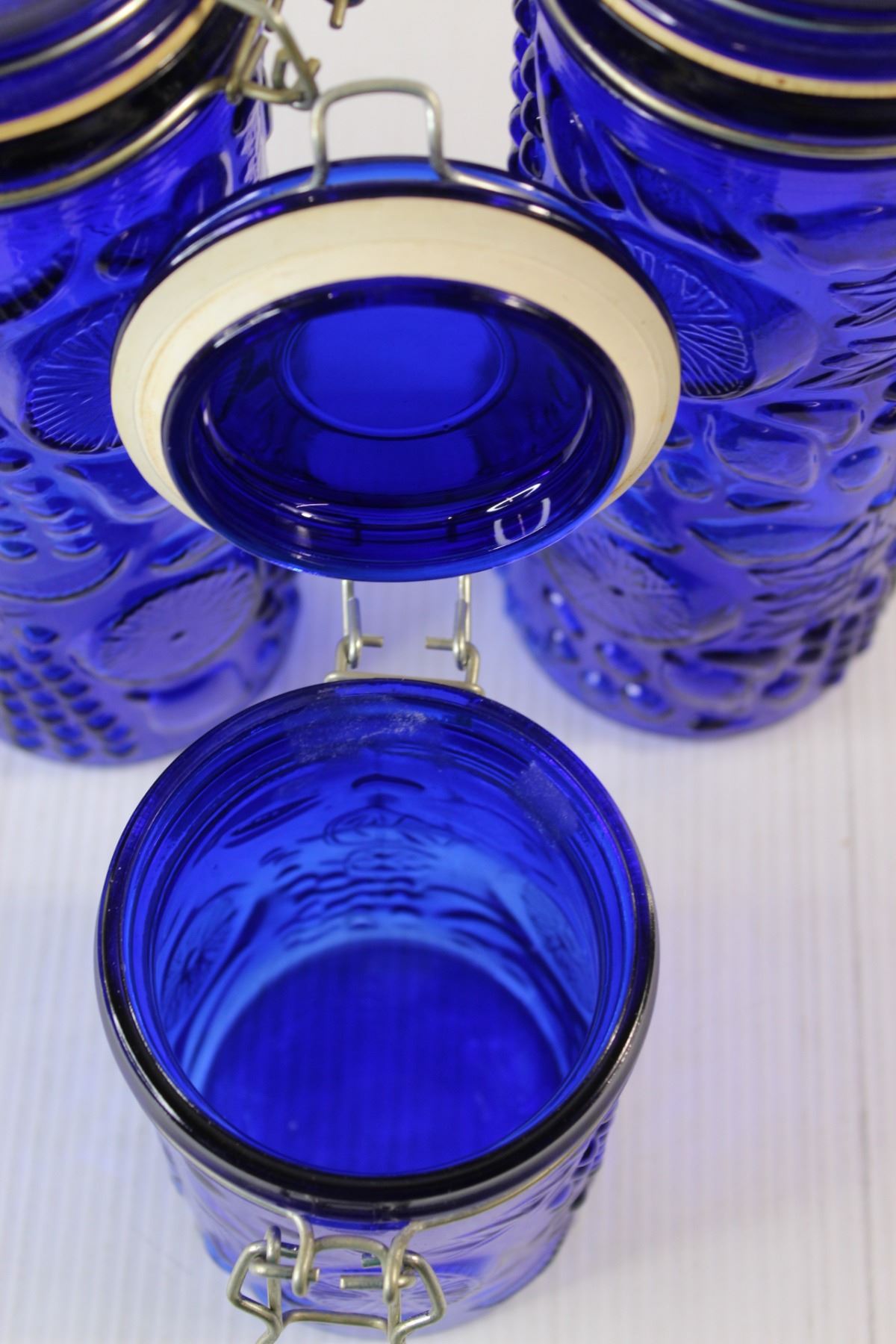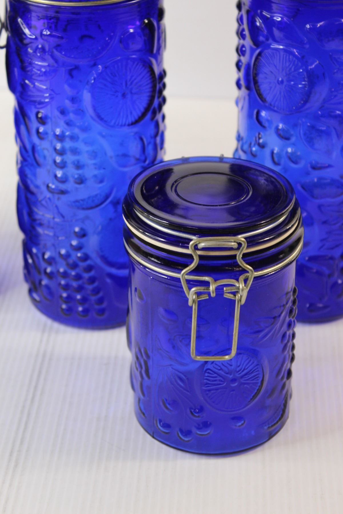 (4) Blue Glass Canisters