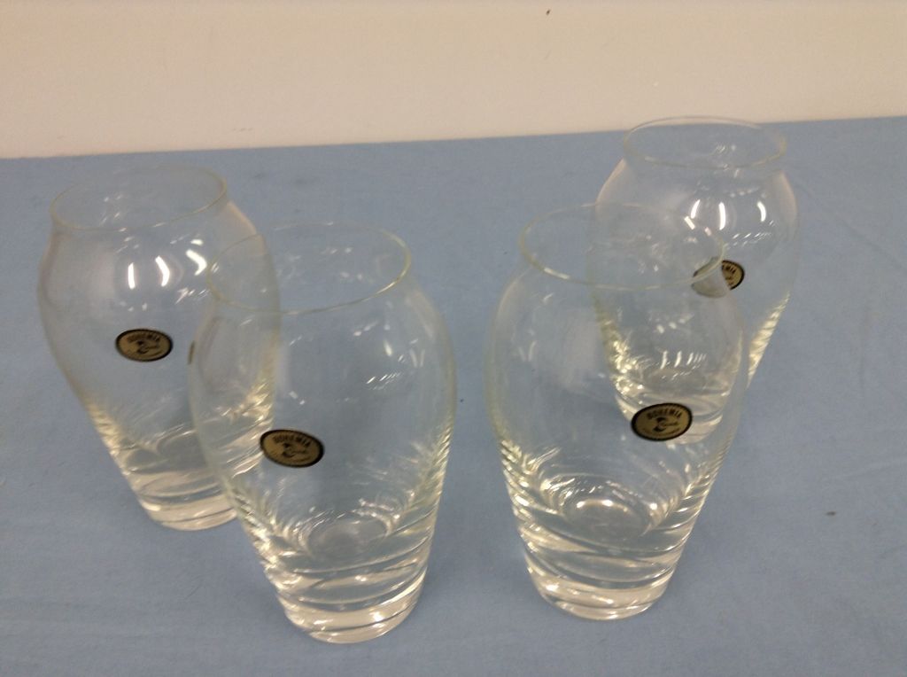 4 Bohemian (Czechoslovakian) Glass Vases (6.5" high)