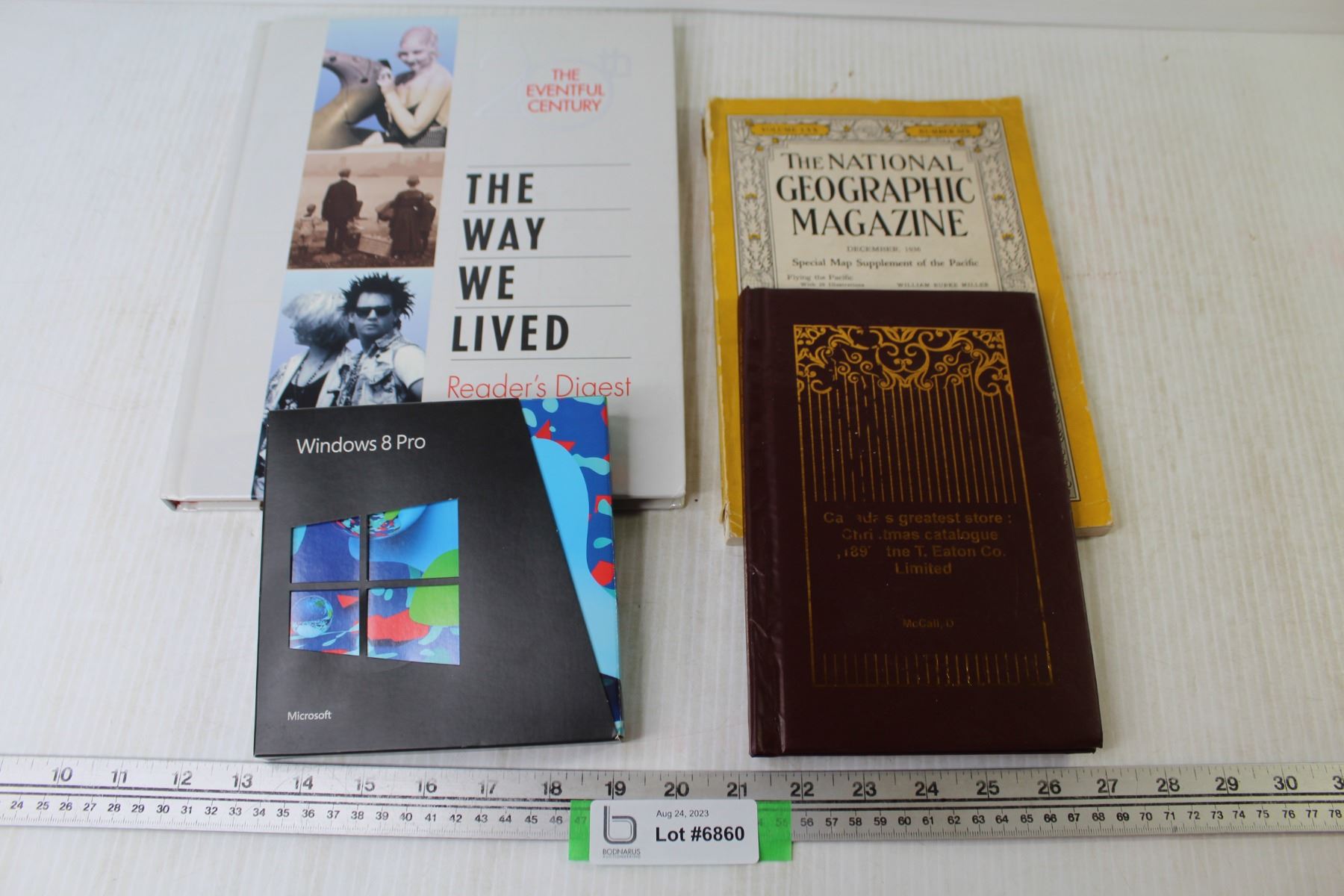 (4) Books - 1897 Eaton's Catalogue - National Geographic - Window 8 Pro - Reader's Digest