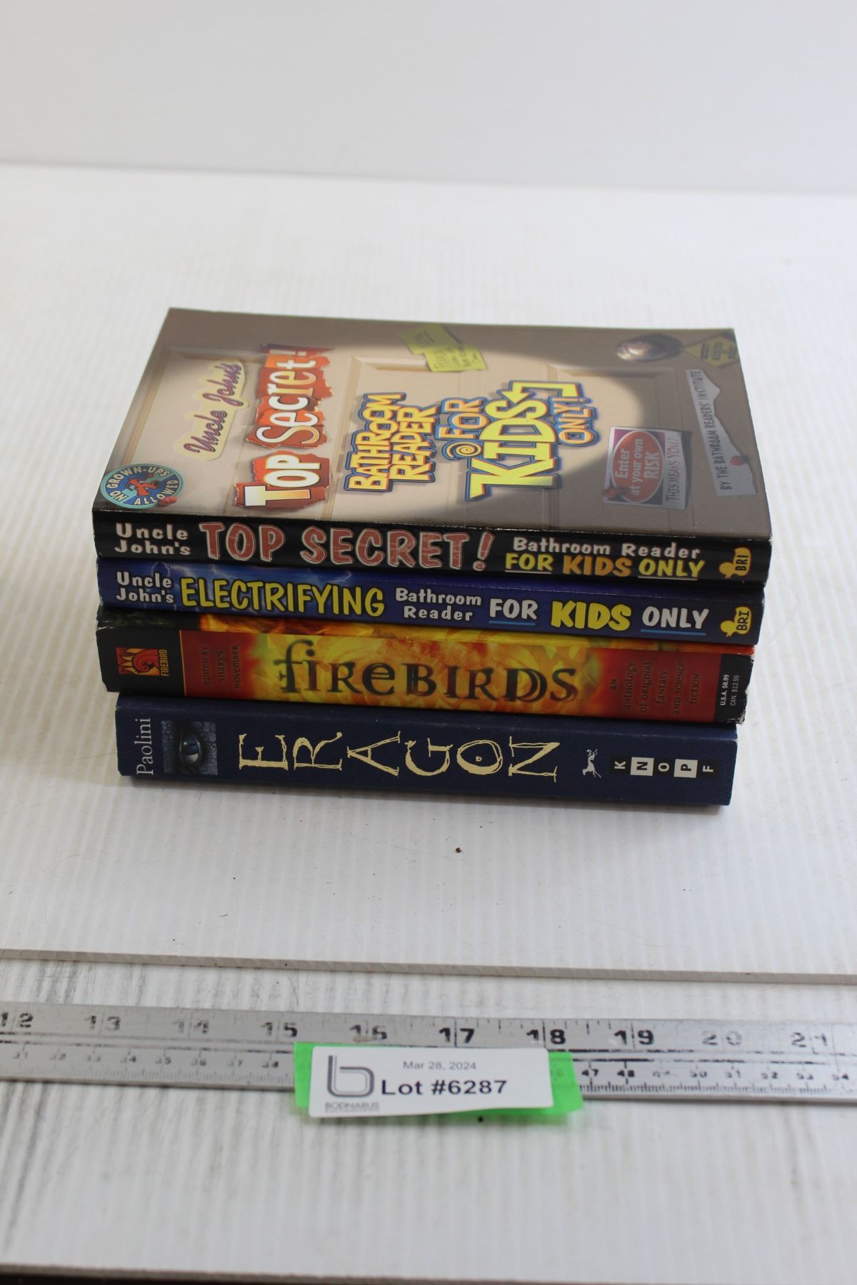 (4) Books - Bathroom Readers, Firebirds, Eragon