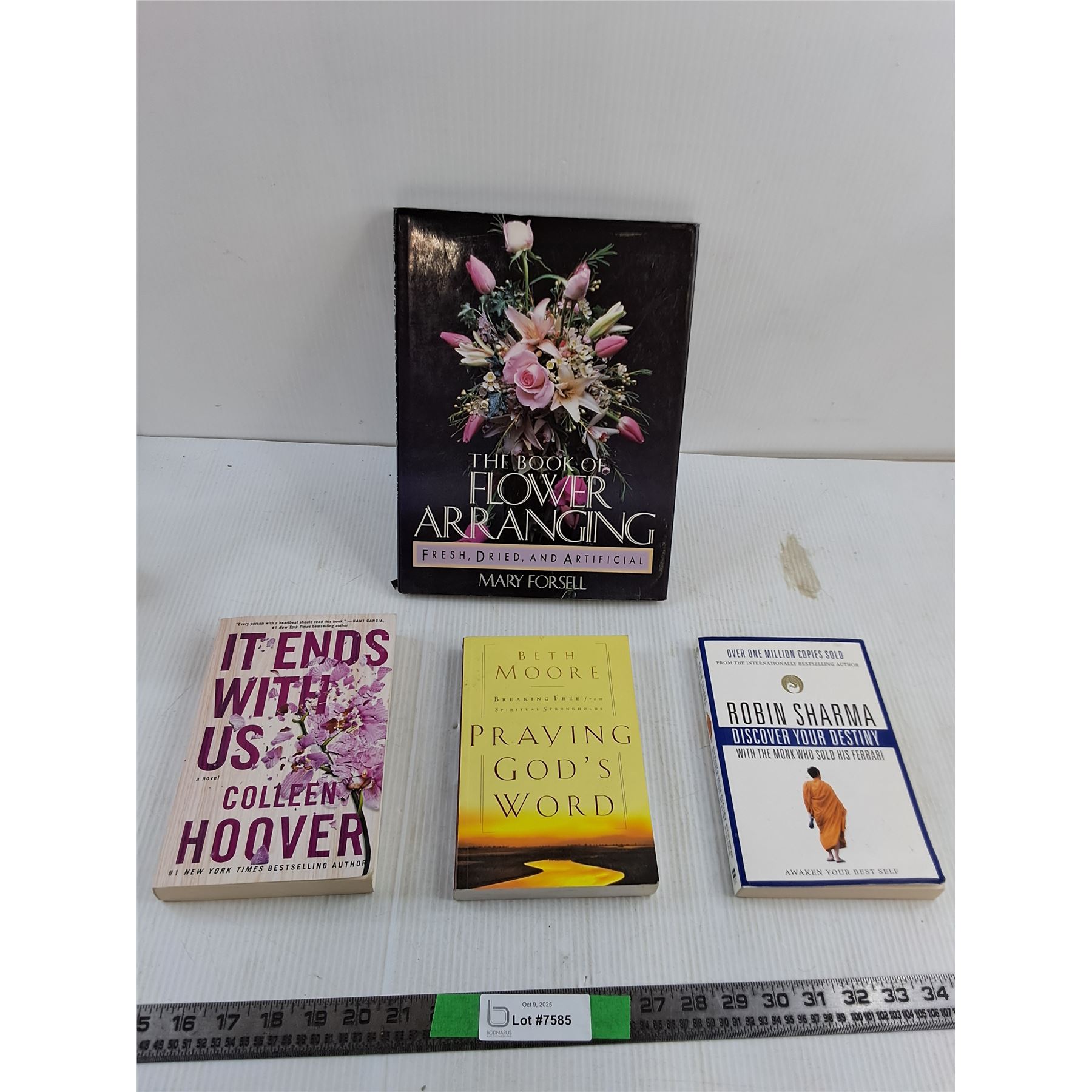 (4) Books- The Book of Flower Arranging, It Ends With Us, Praying God's Word, Discover Your Destiny