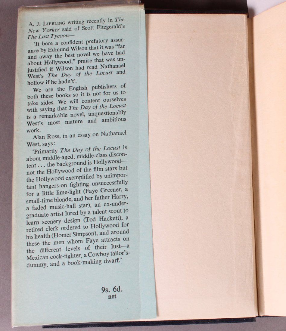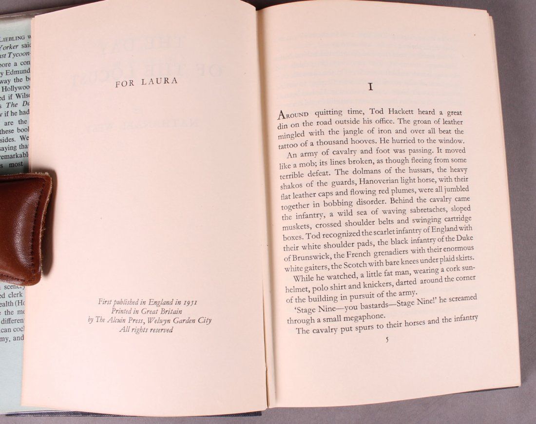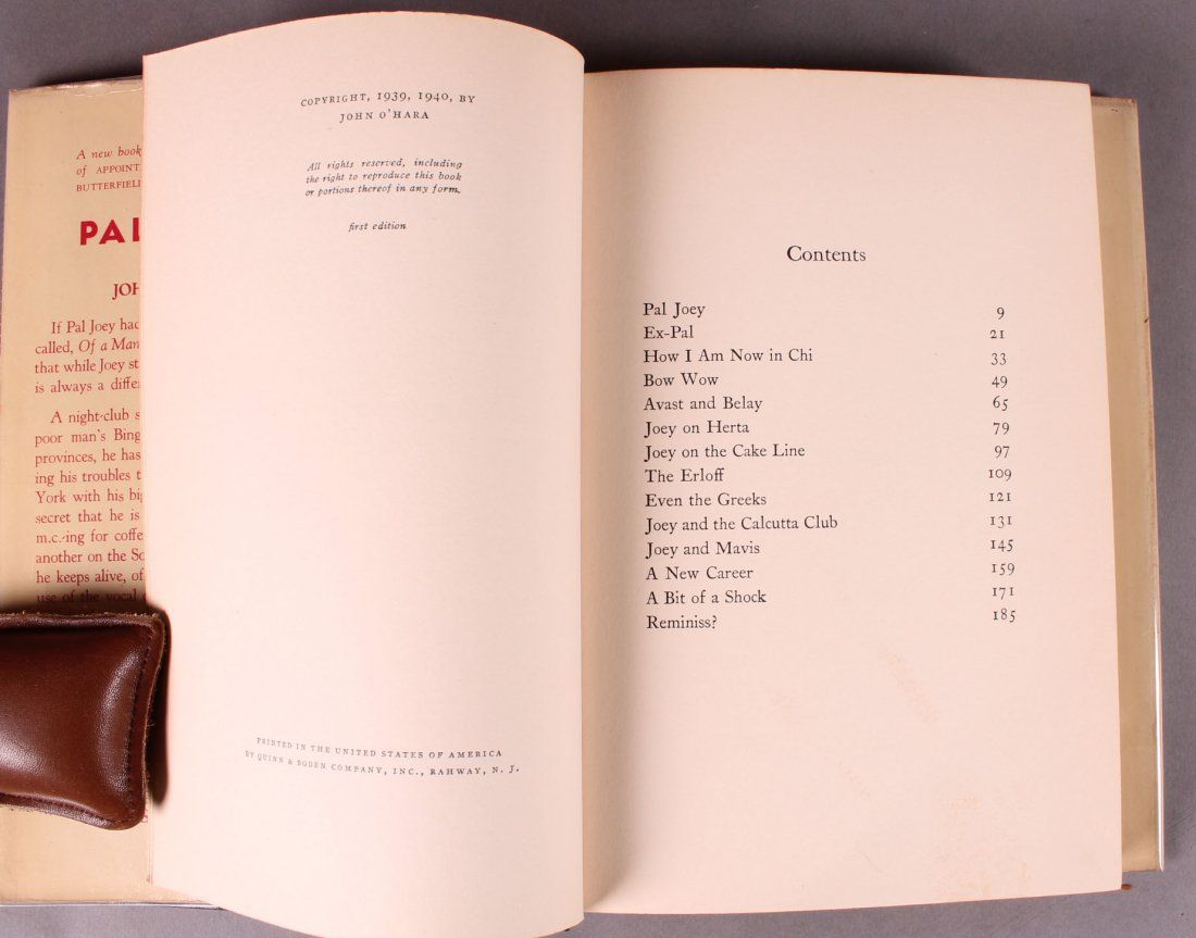 [Hemingway/O'Hara/Henry James]. 4 Titles. ++ Ernest Hemingway. ACROSS THE RIVER AND INTO THE TREES. NY: Charles Scribner?s Sons, 1950. 8vo. Black cloth. Lower edge of covers worn, very good in dj with creasing and minor tears (less than ? inch) near edges. 1st edition, in 2nd state dj (lettering more orange). Hanneman A23a. ++ John O?Hara. PAL JOEY. NY: Duell, Sloan and Pearce, (1940). 8vo. Very dark blue cloth very good in fair dj. Eps foxed. Ink Ownership on ffep. 1st edition, so stated. Bruccoli, VI, 1. ++ Nathanael West. THE DAY OF THE LOCUST. Lon: Grey Walls Press, (1951). 8vo. Navy blue cloth very good in very good dj. 1st British edition. Homer Simpson on "The Simpsons" is named after one of the main characters in this novel. ++ Henry James. ITALIAN HOURS. Illustrations by Joseph Pennell. Bos/NY: Houghton Mifflin, 1909. 4to. Orange-brown-red cloth. Minor surface soiling, frontis's tissue guard loose. Marginal crease to plate facing p204. Numerous color plates. 1st American trade edition. Edel & Laurence, "A Bibliography of Henry James," A67.