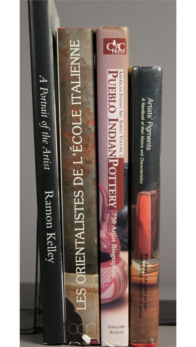 [Art]. 4 Titles. ++ A PORTRAIT OF THE ARTIST: RAMON KELLEY. (2004). ++ PUEBLO INDIAN POTTERY: 750 Artist Biographies c. 1800-present. Volume 2 from ?American Indian Art? series. (2000). Sticker to lower right of front dj panel. ++ Robert L. Feller (ed.). ARTISTS? PIGMENTS: A Handbook of their History and Characteristics. Vol 1. (1986). Some scuffing and slight soiling to rear dj panel. ++ Caroline Juler. LES ORIENTALISTES DE L?ECOLE ITALIENNE. (1992). Chipping to base of dj?s spine.