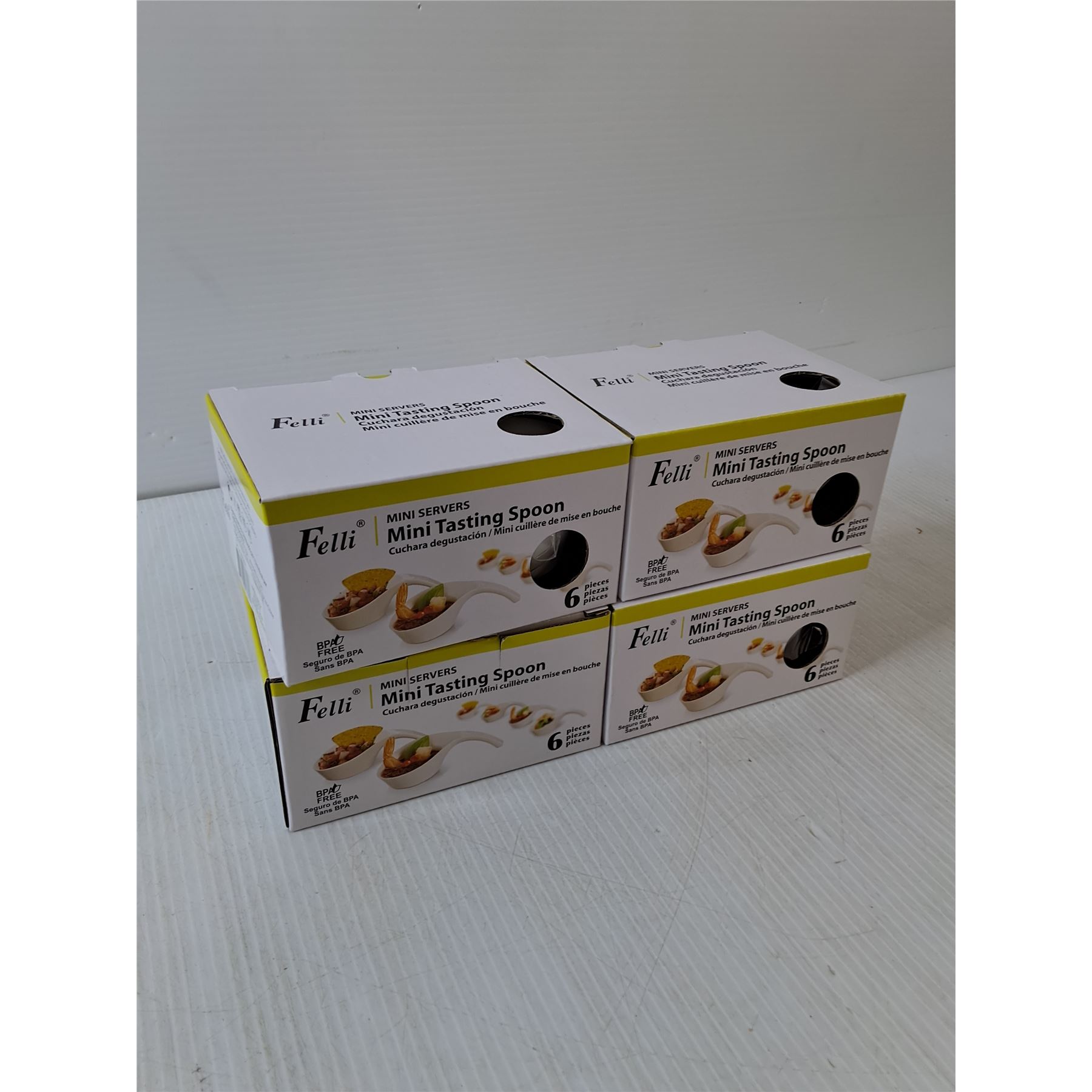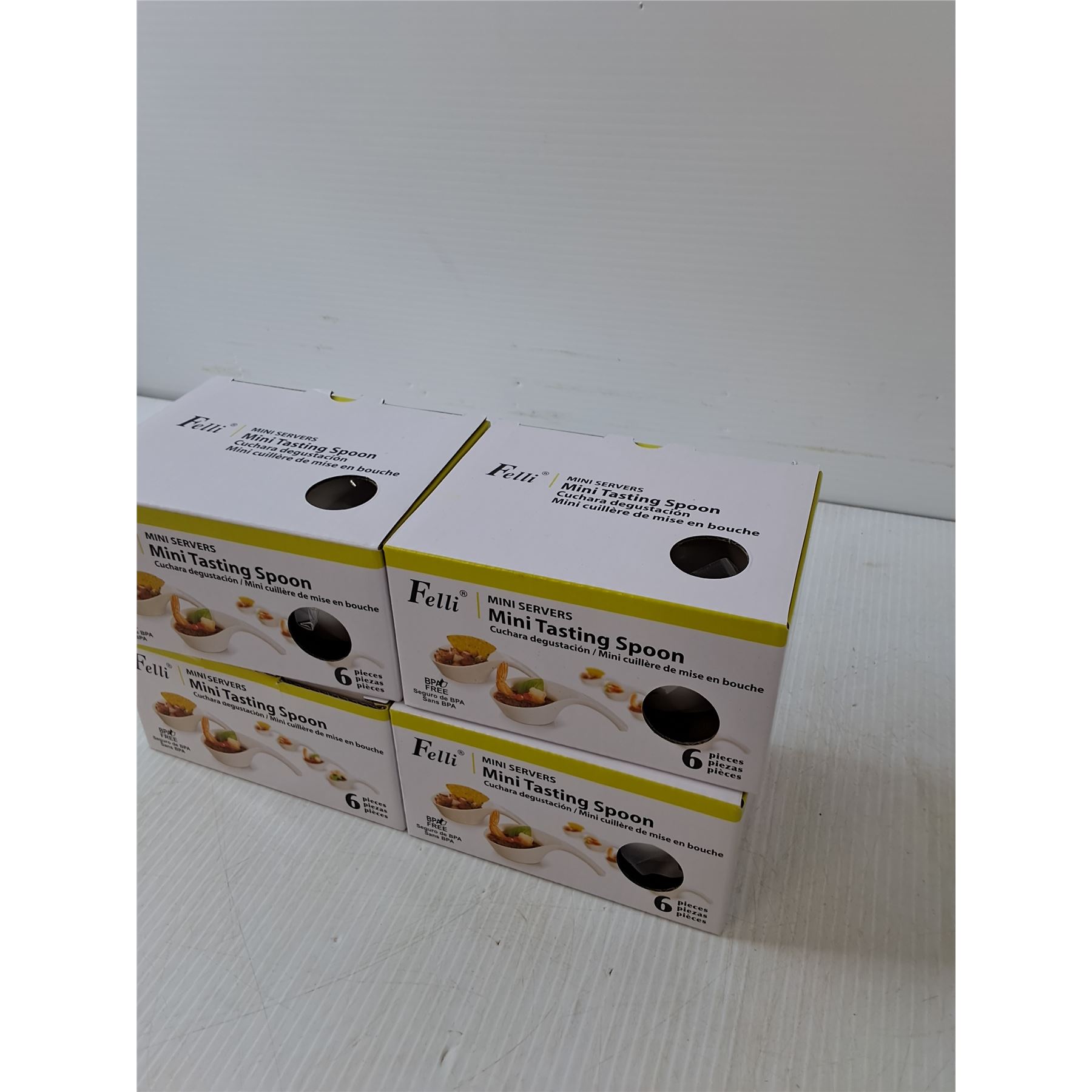 (4) Box Of Mini Tasting Spoons- Each Box Has (6)- NIB