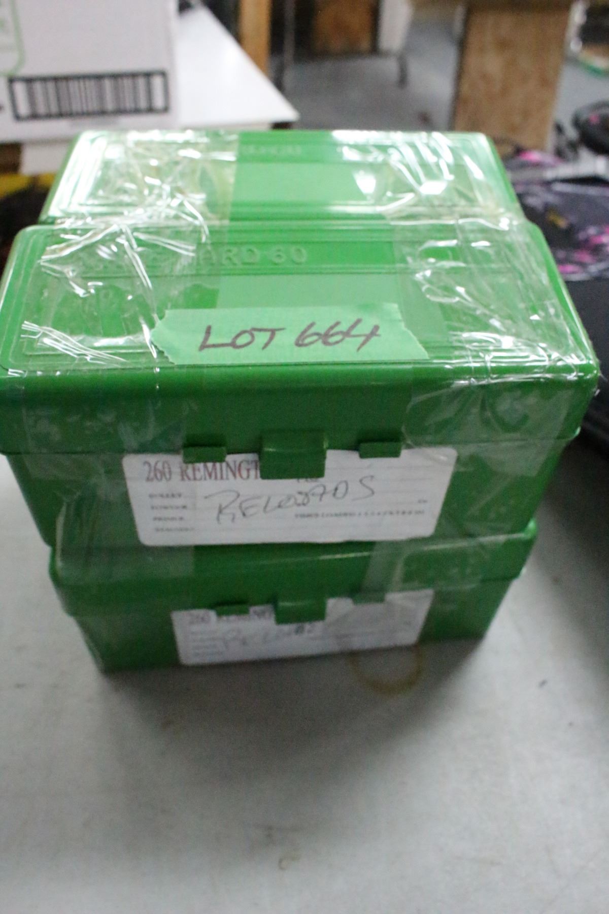 4 Boxes (Caseguard 60) of Reloaded 260 Remington - Some are in 308 Casings. Load Information is on the Inside Cover