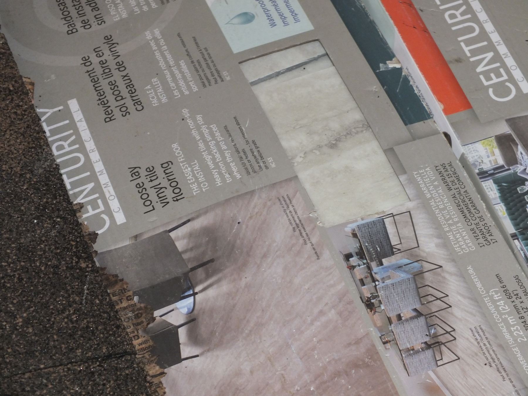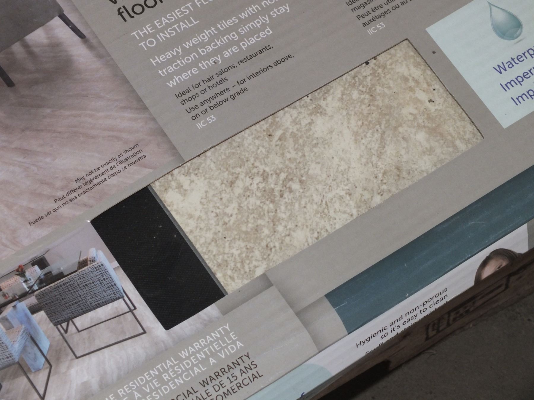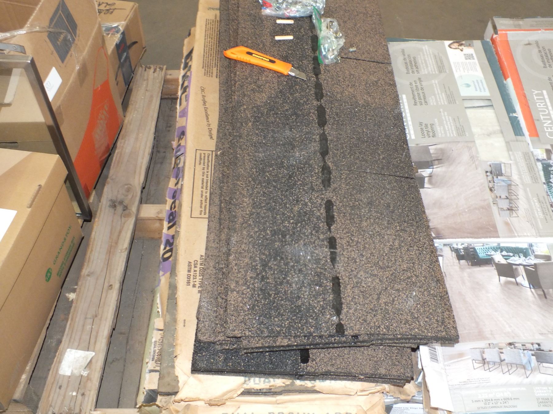 4 Boxes Of Roof Shingles & 7 Boxes Of Loose Lay Vinyl Tile Flooring, 24sq ft per box on the flooring....like new