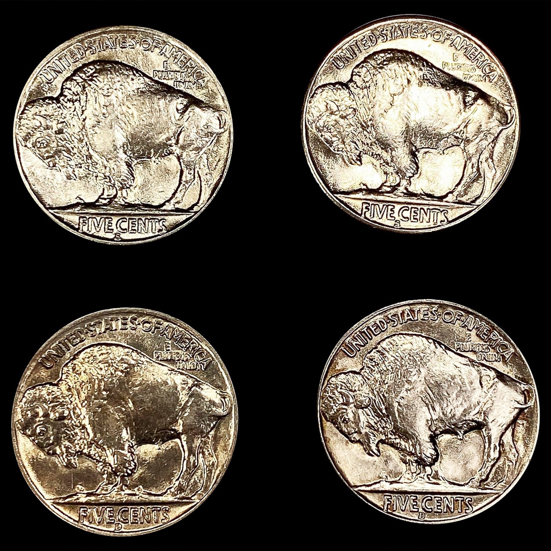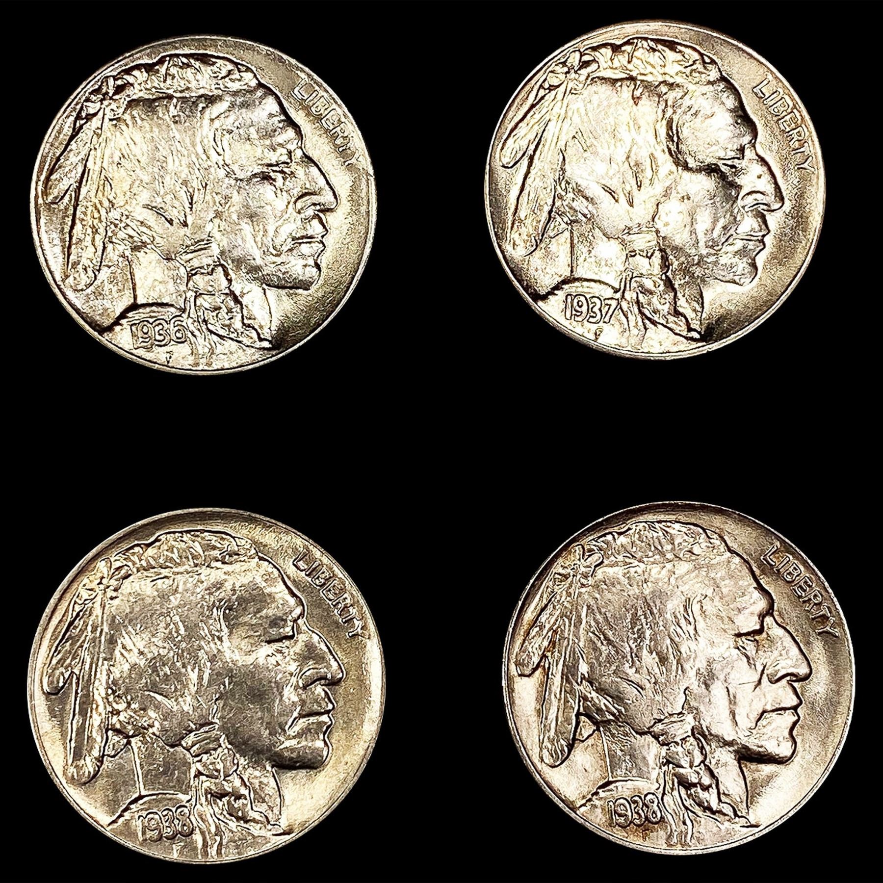 (4) Buffalo Nickels (1936-S, 1937-S, (2) 1938-D)