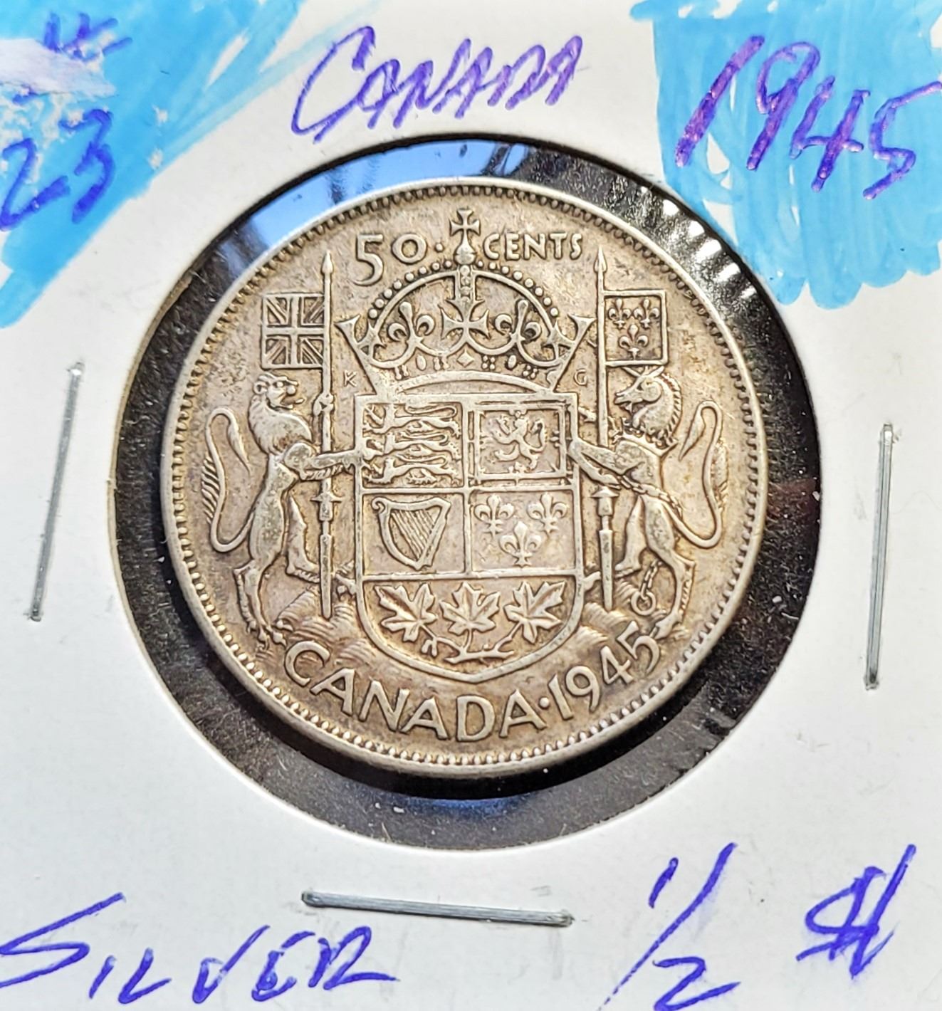 4) CANADA 1945 90% SILVER HALF DOLLAR.