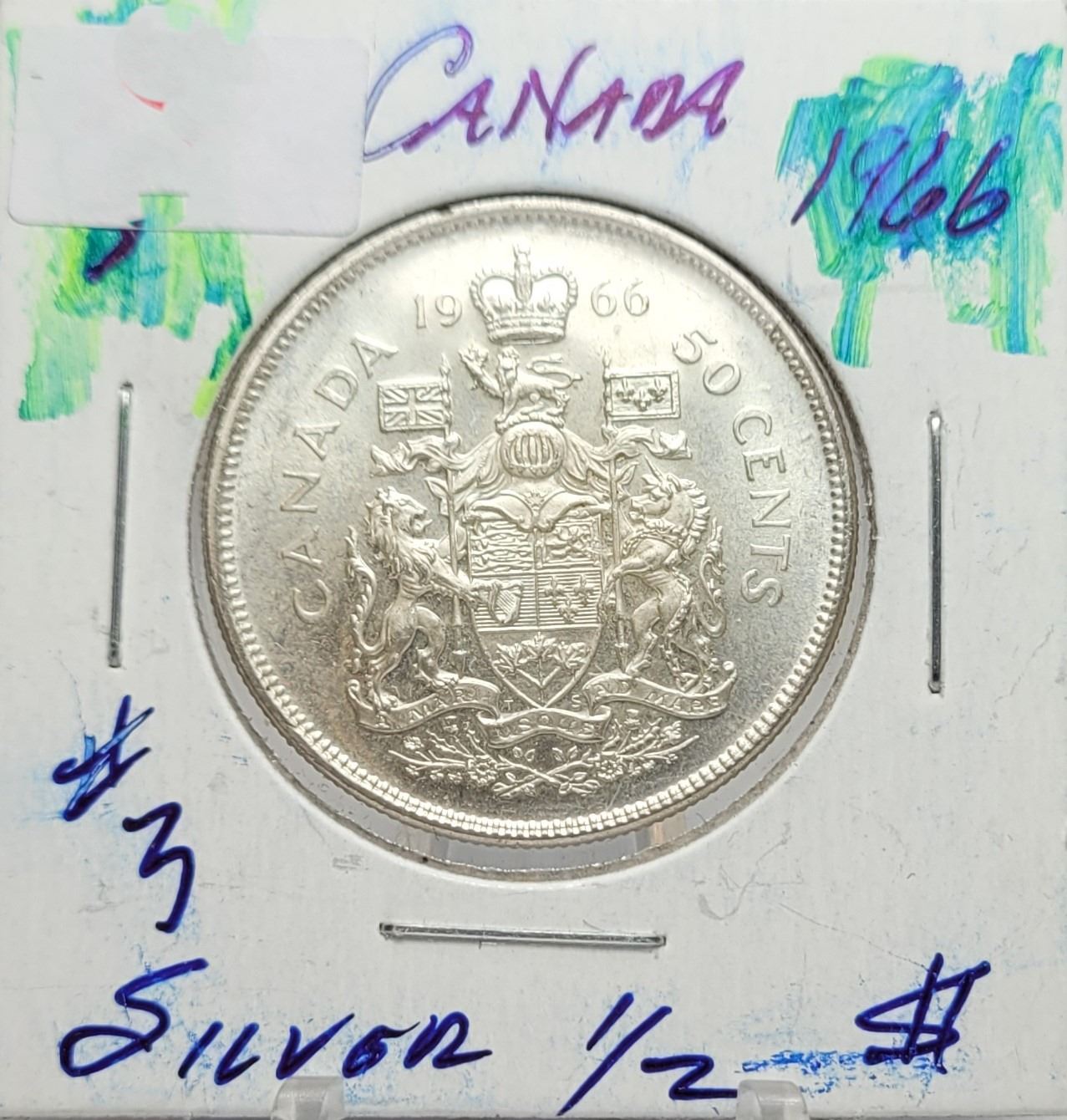 4) CANADIAN 1966 1/2 DOLLAR, 80% SILVER COIN