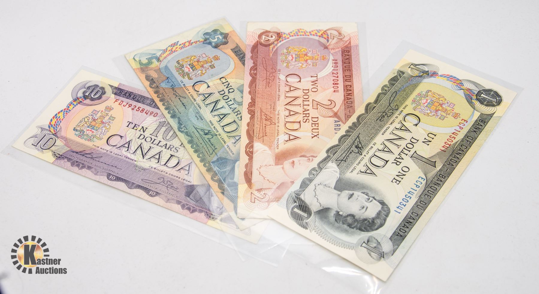 4 CANADIAN BILLS $1-1973, $2-1974, $5-1979,