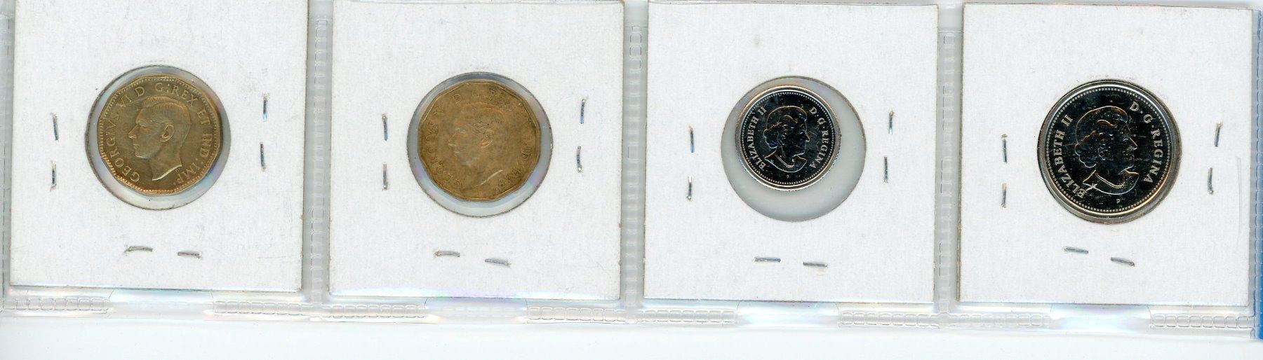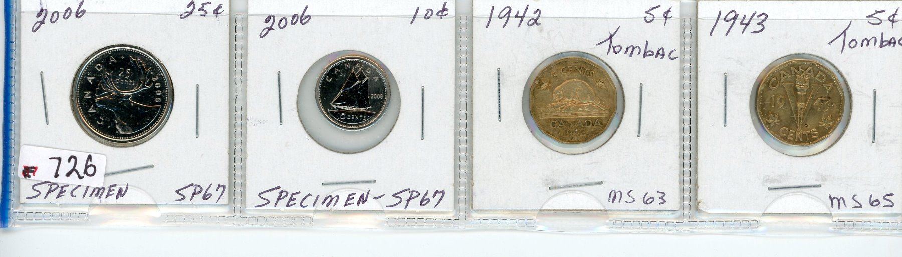4 CANADIAN COINS (2006-.25 & .10, 1942-43 .05 TOMBAC)