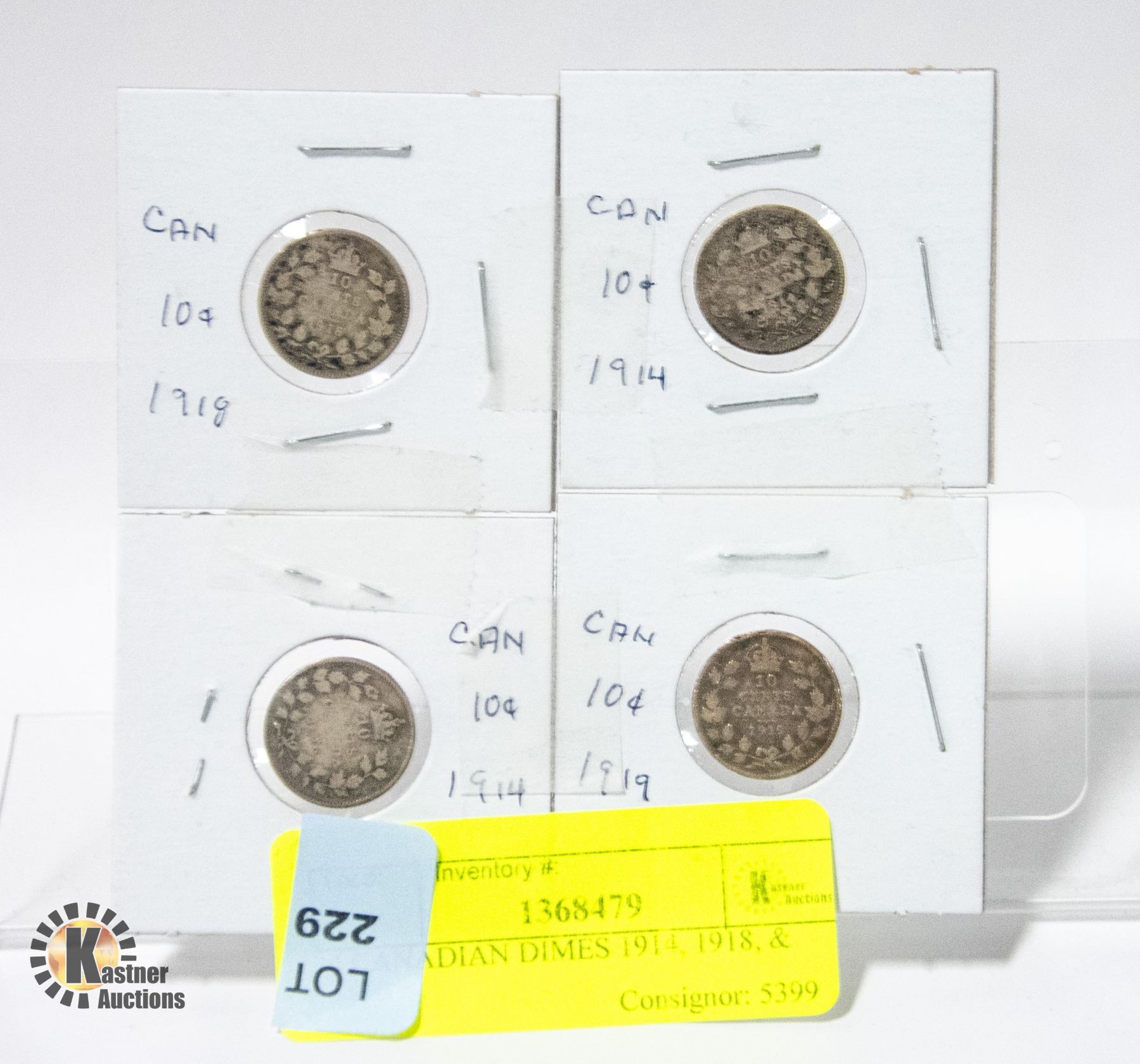 4 CANADIAN DIMES 1914, 1918, & 1919