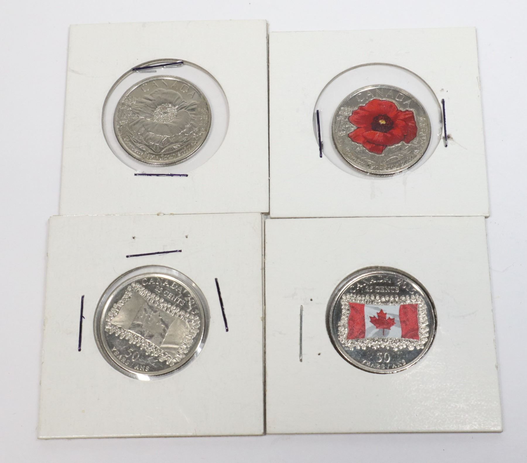 4 CANADIAN QUARTERS, TWO ARE COLOURED VARIANT