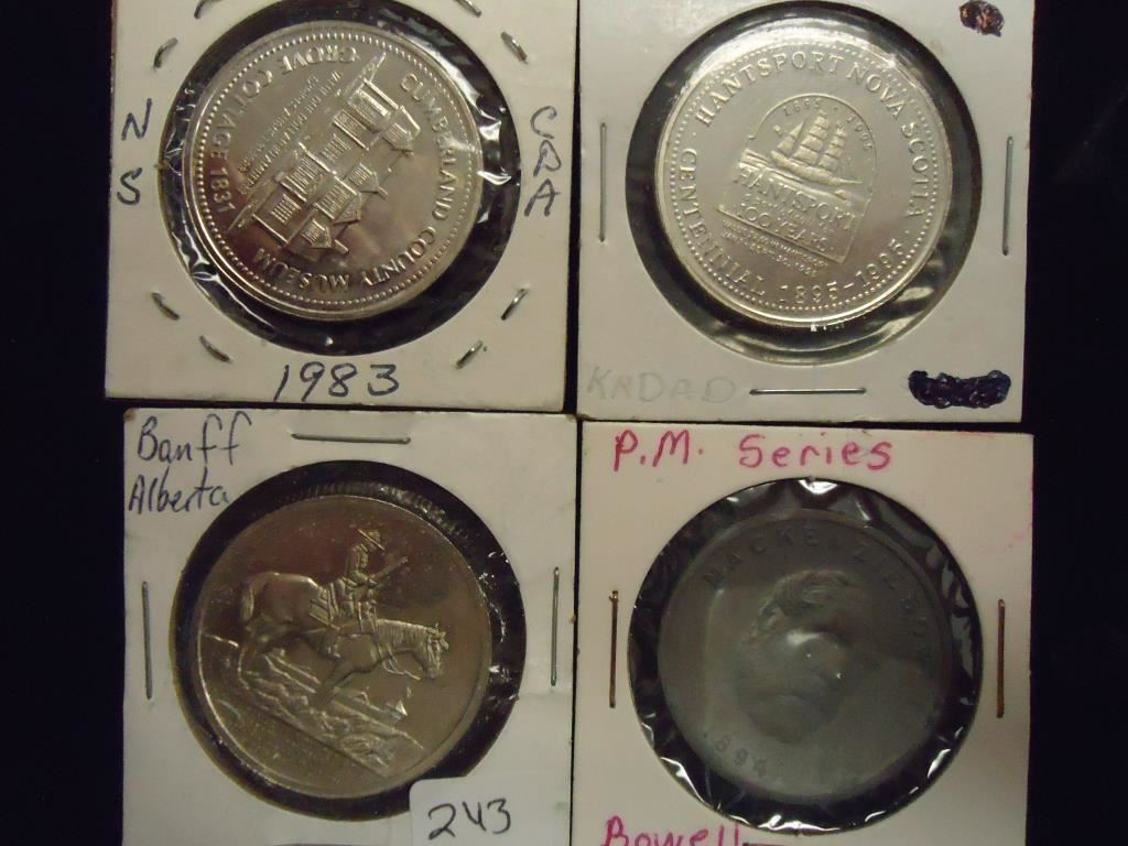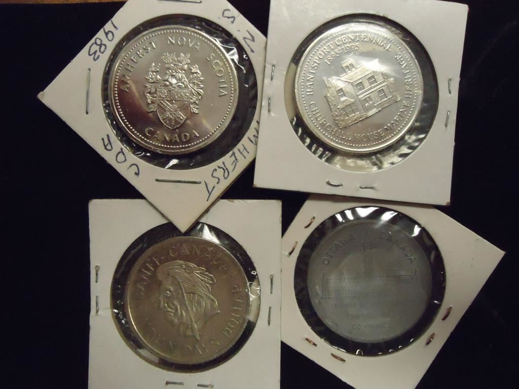 4 CANADIAN TRADE DOLLARS 1983, 1995, BANFF ALBERTA AND OTTAWA (MACKENZIE BOWELL)