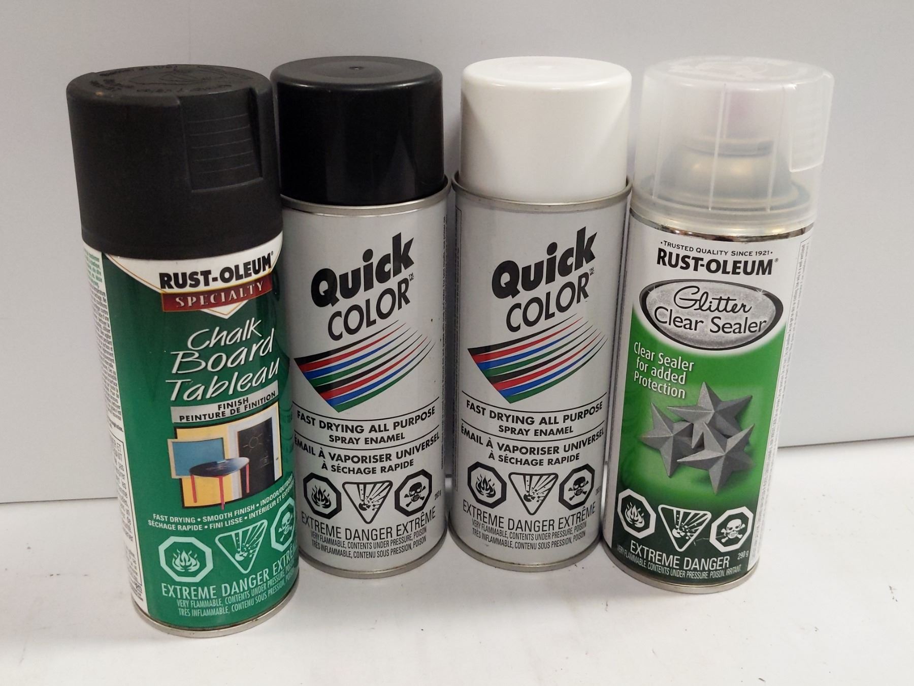 4 CANS OF ASSORTED SPRAY PAINTS, INCLUDES SEALER