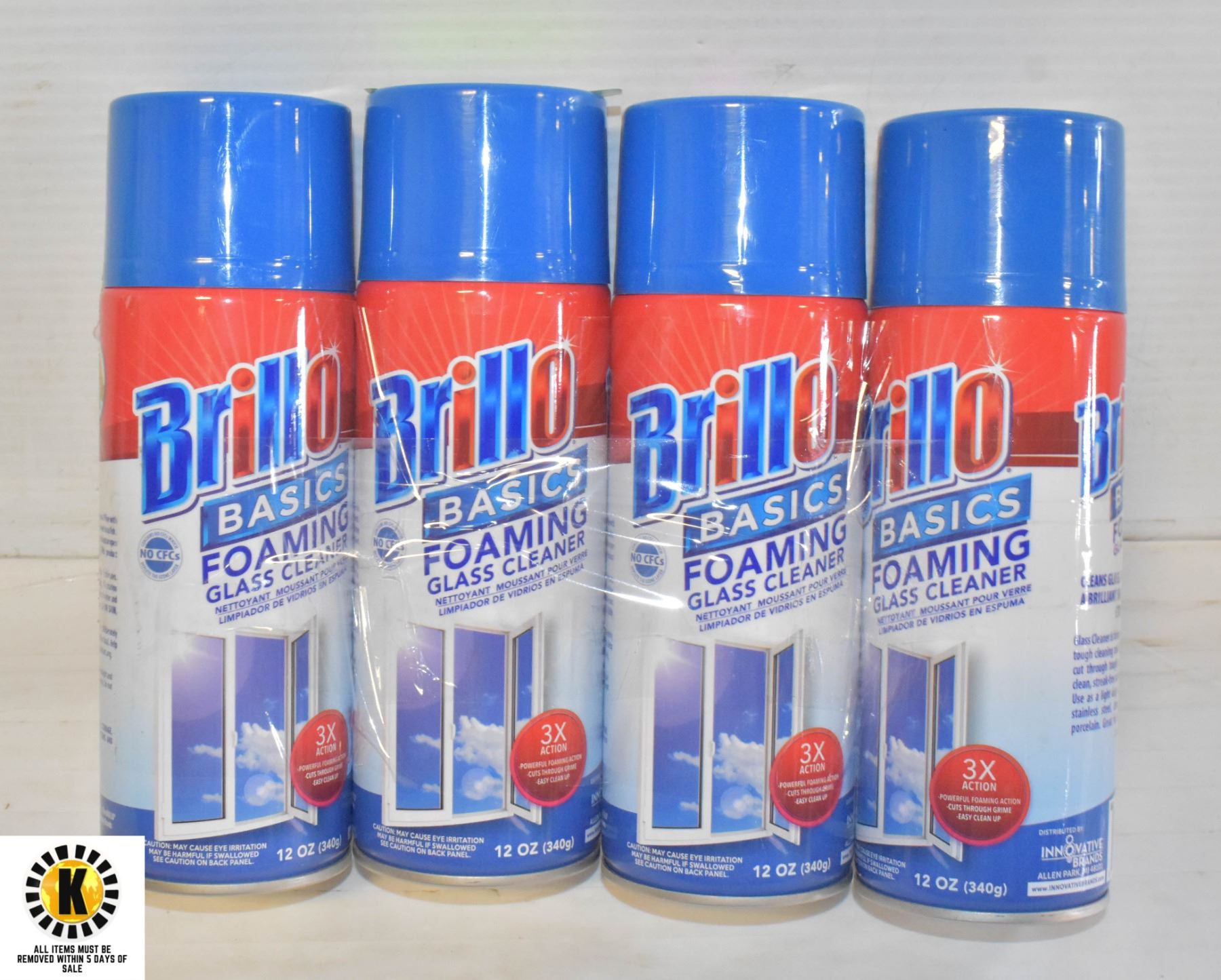4 CANS OF FOAMING GLASS CLEANER