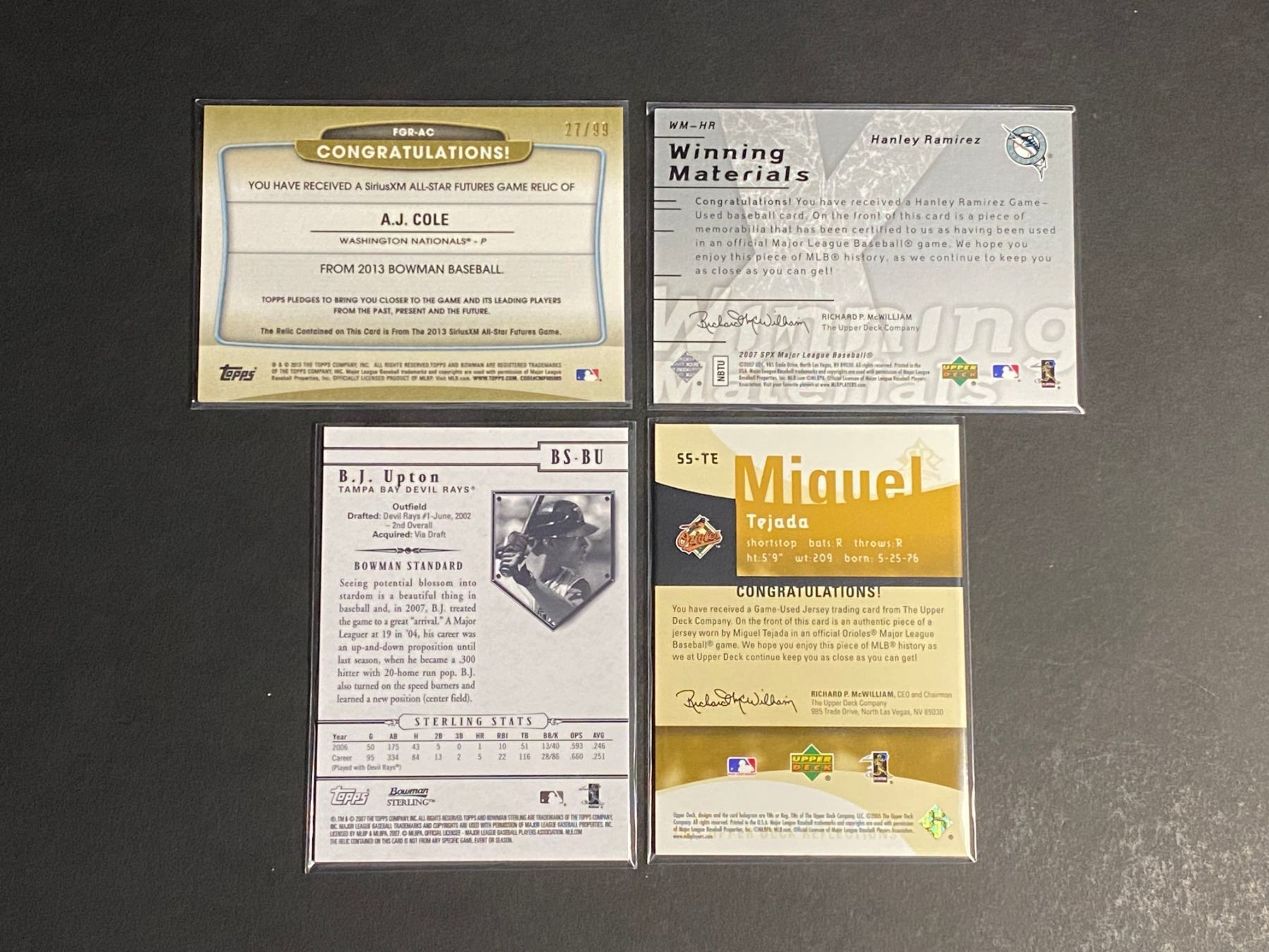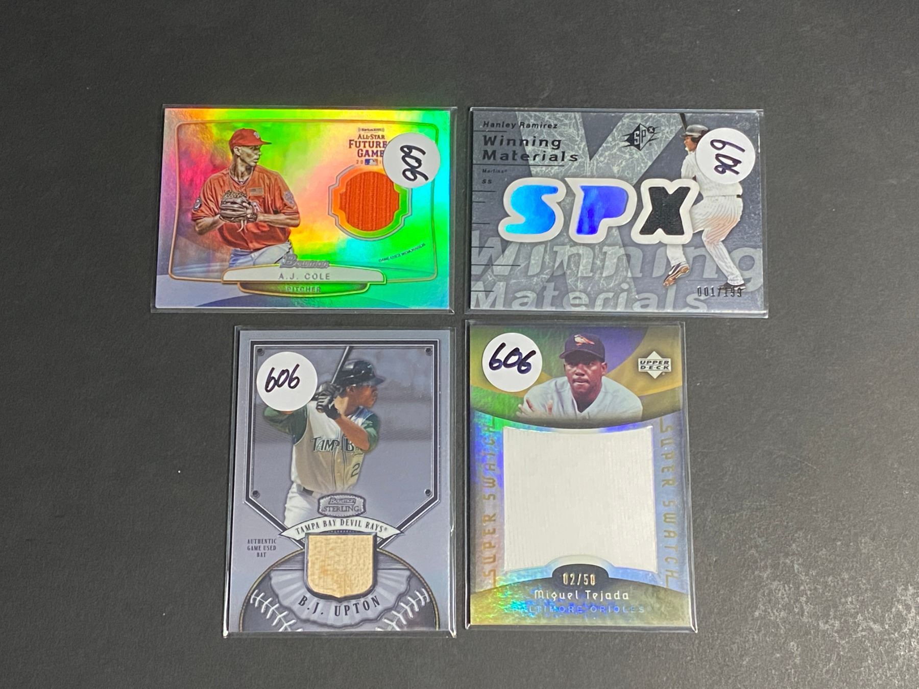 4 CARD LOT 3 JERSEY CARD AND ONE GAME USED BAT CARD