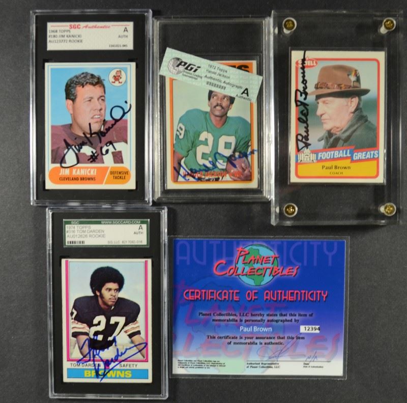 4 - CERTIFIED VINTAGE NFL SIGNATURES - PAUL BROWN, HAROLD JACKSON, , KANICKI &
