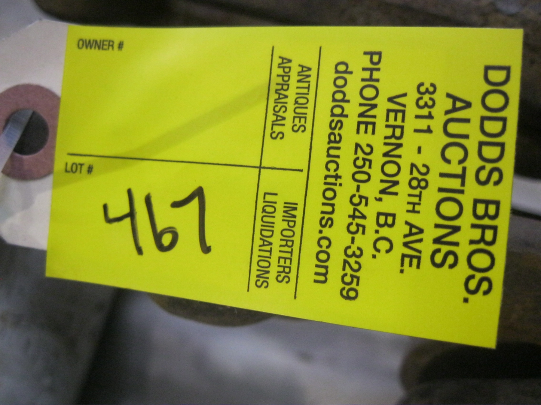 Attendance at the auction preview, or removal of purchased lots by purchaser/bidders and guests is done at their sole risk. Dodds Auction assumes no risk or liability, statutory, common law or otherwise whatsoever for the safety of those attending at the auction premises.