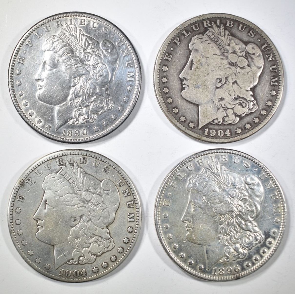 4 CIRC MORGAN DOLLARS 1890-S, 96, 2 04-S.