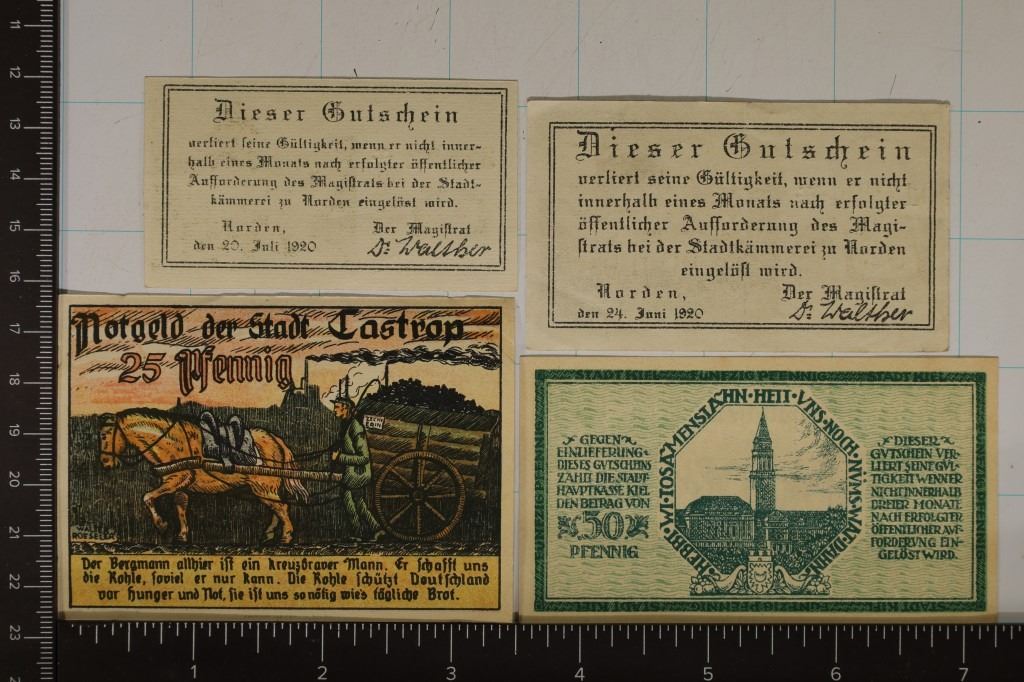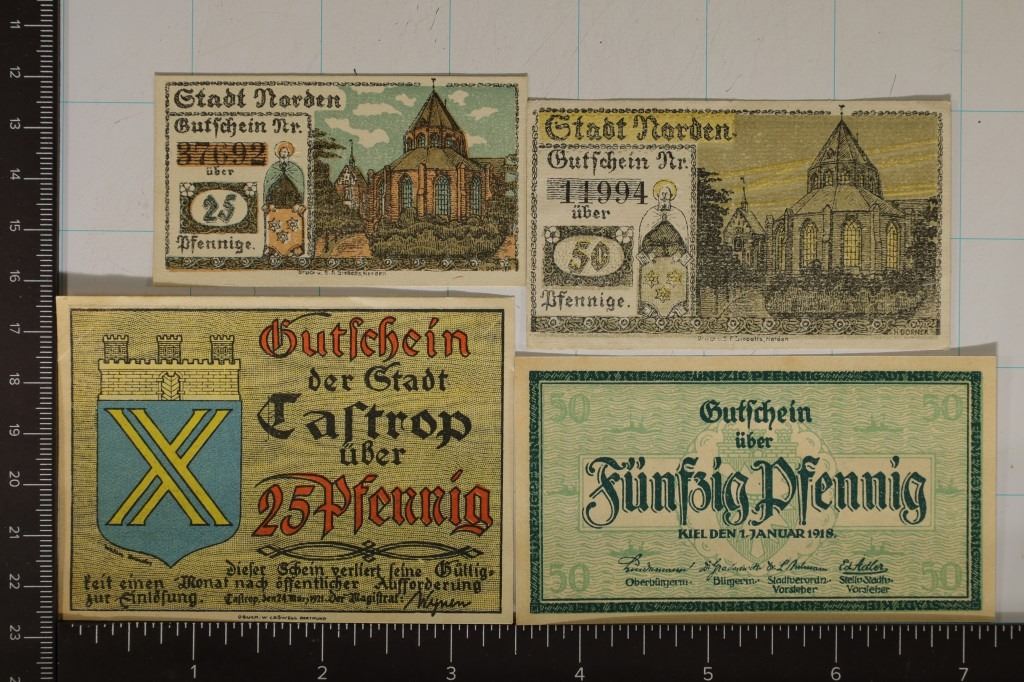 PFENNIGS AND 2-50 PFENNINGS. 1 OF THE 25 PFENNINGS HAS A SMALL CORNER FOLD UPPER LEFT CORNER