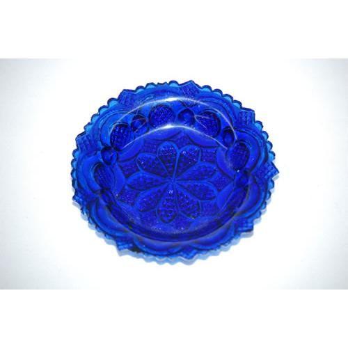 4" COBALT SANDWICH GLASS CUP PLATE-ROMAN ROSETTE PATTERN, BOSTON & SANDWICH GLASS CO. - STRONG COLOR, MINOR RIM CHIPS