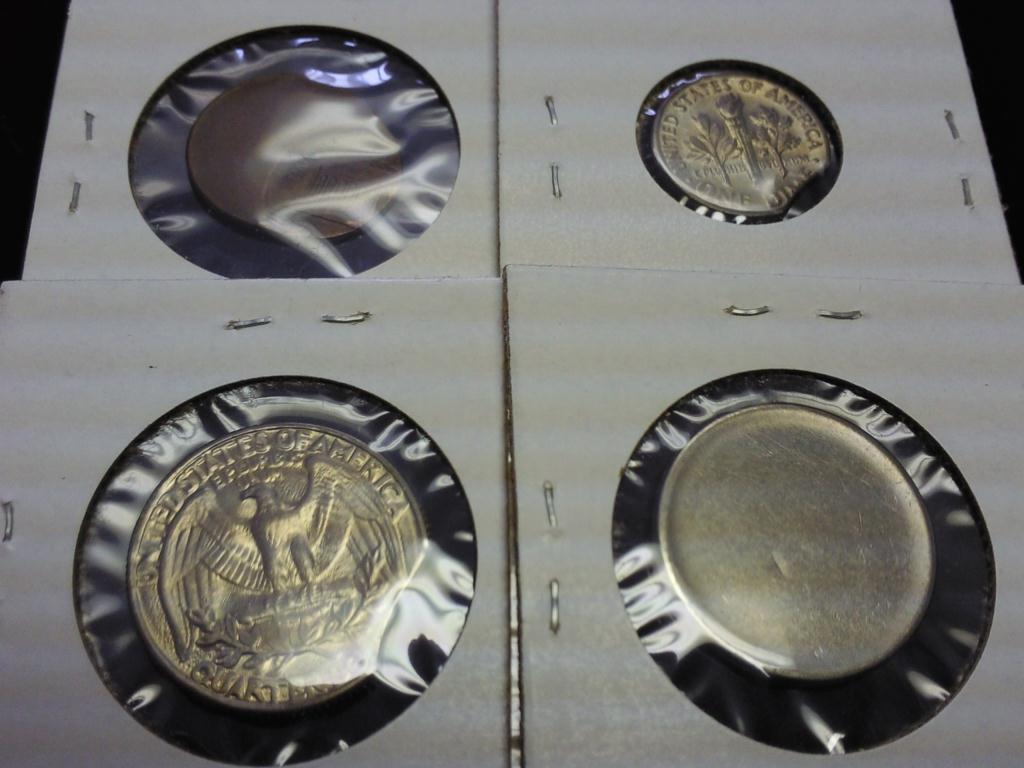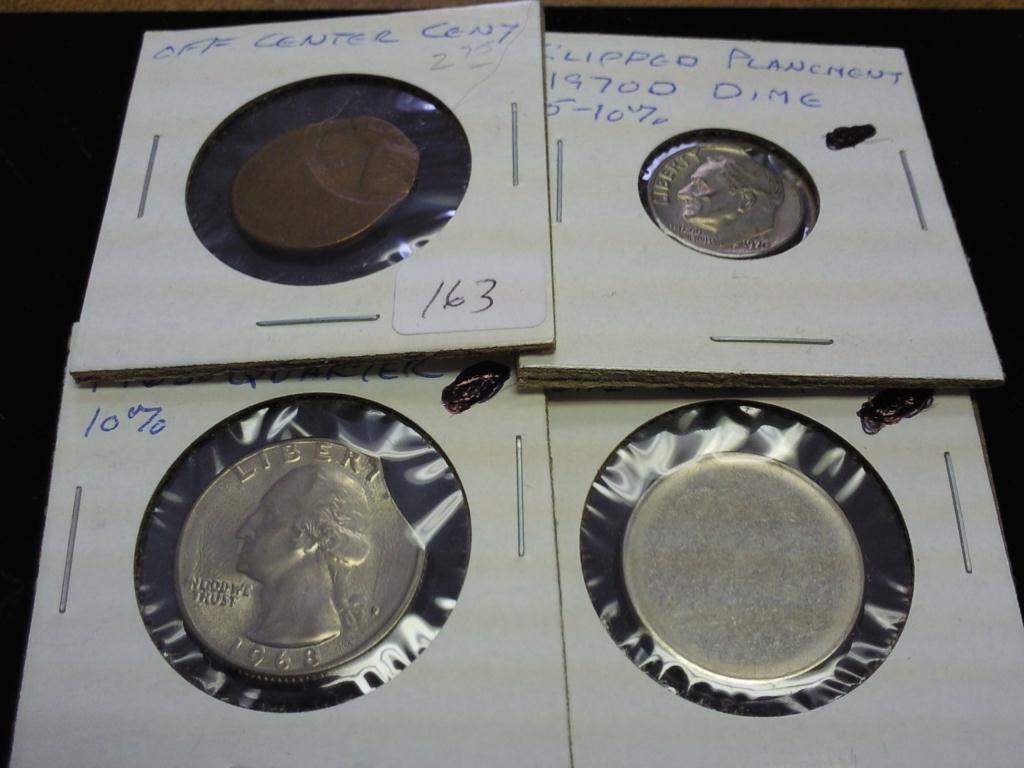 1970-D CLIPPED PLANCHET DIME, 1968-D CLIPPED PLANCHET QUARTER AND QUARTER BLANK PLANCHET