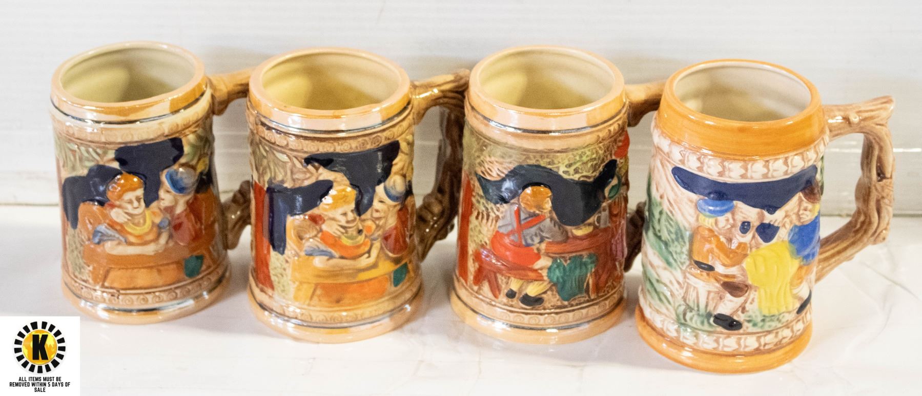 4 COLOURED GERMAN STYLE BEER STEINSÿ