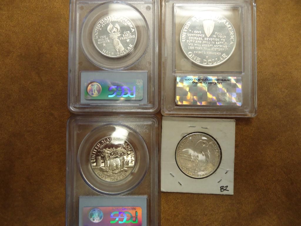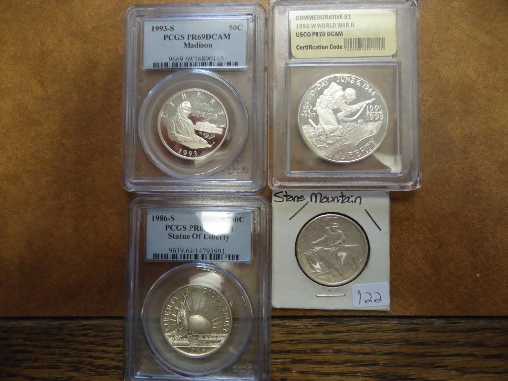 1925 STONE MT., 1986-S LIBERTY PCGS PR69 DCAM, 1993-S MADISON PCGS PR69 DCAM AND 1993-W WWII USCG PR70 DCAM