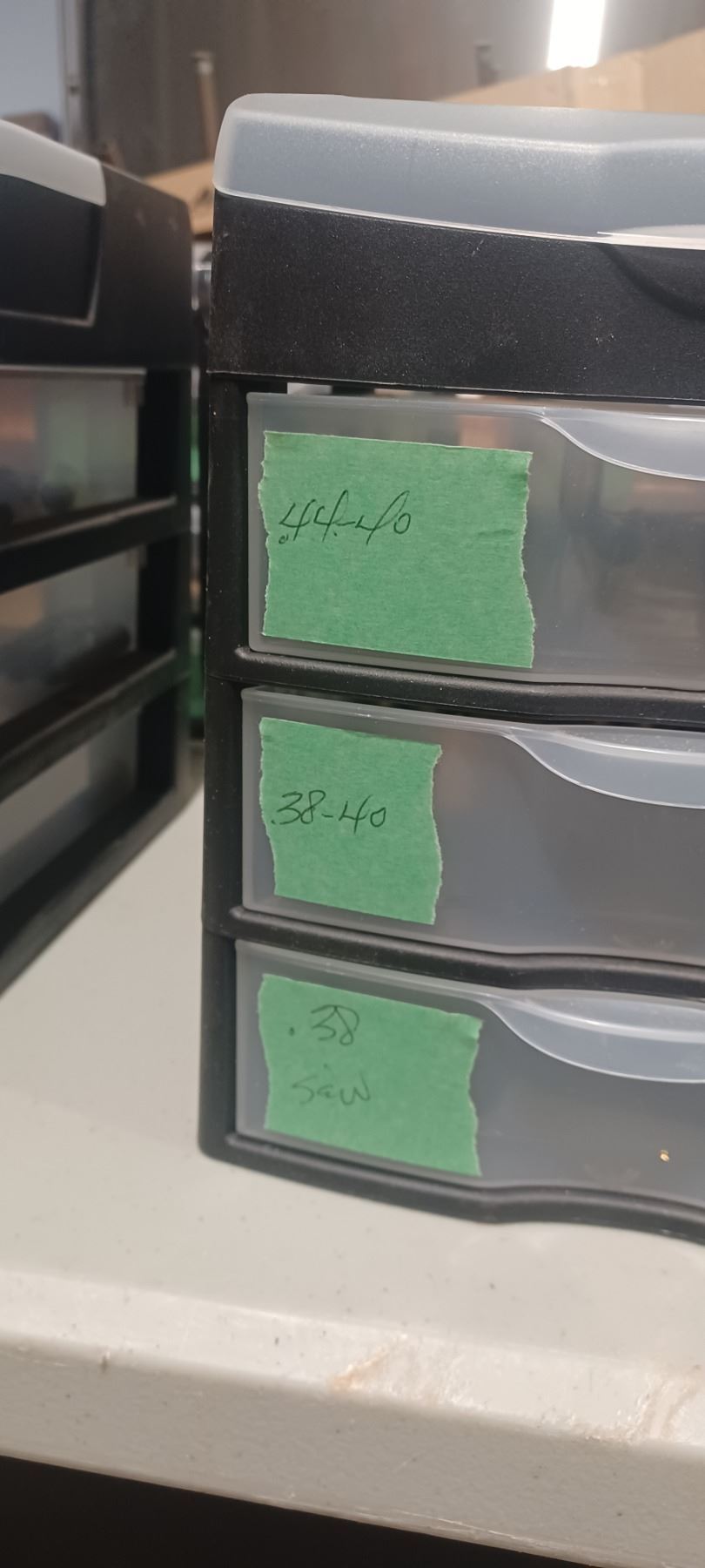 4 COMPARTMENT CONTAINER WITH ASSORTED BRASS SEE PHOTOS FOR DETAILS