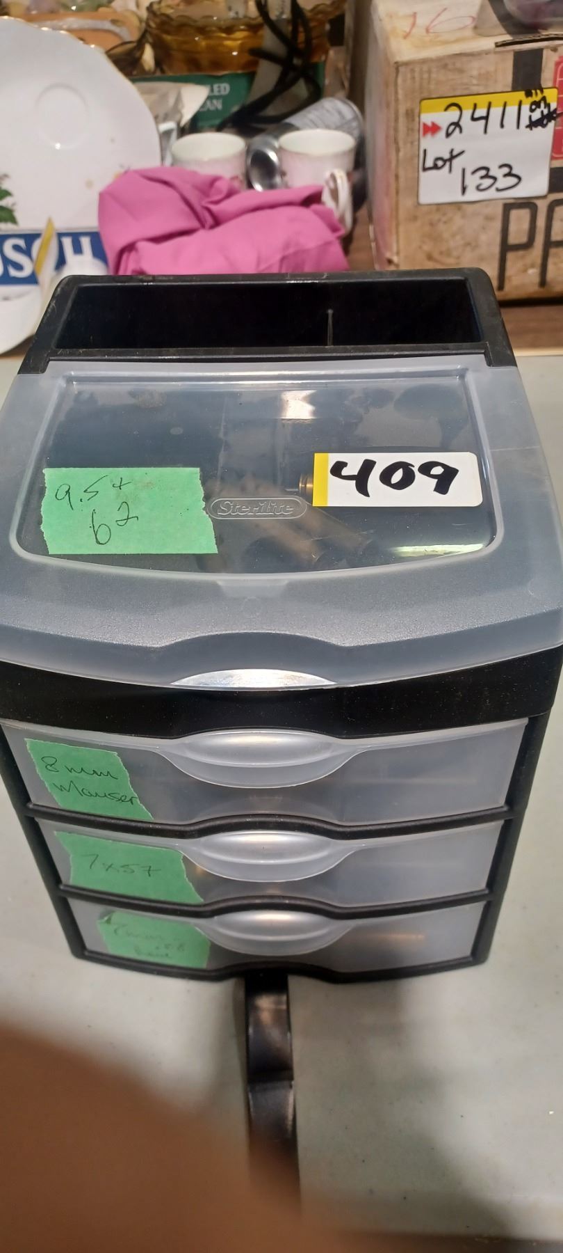 4 COMPARTMENT CONTAINER WITH ASSORTED BRASS SEE PHOTOS FOR DETAILS