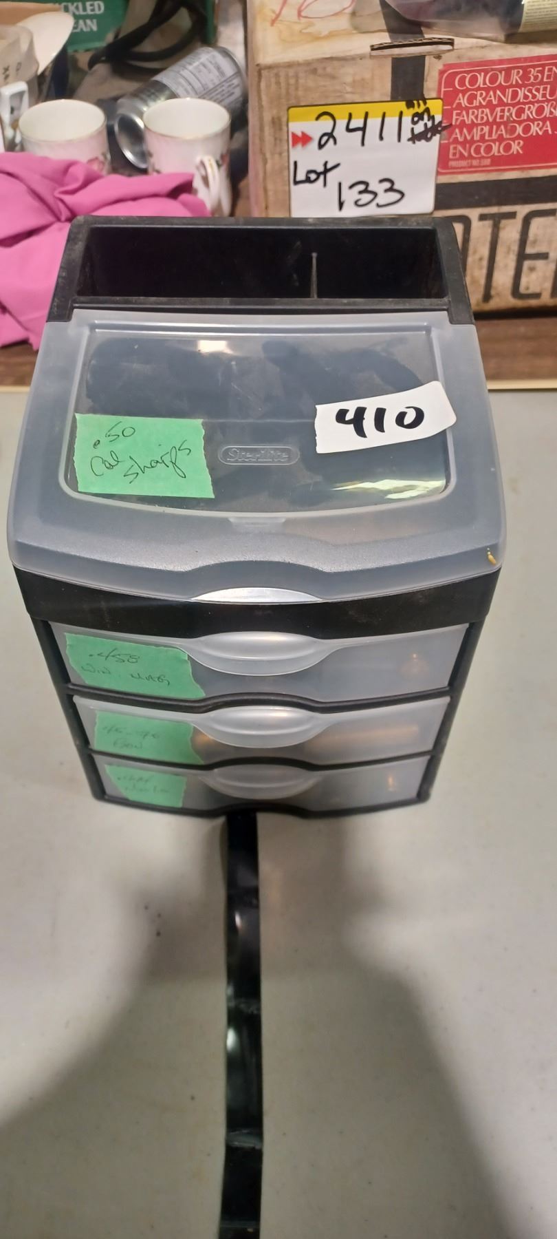 4 COMPARTMENT  CONTAINER WITH ASSORTED BRASS SEE PHOTOS FOR DETAILS