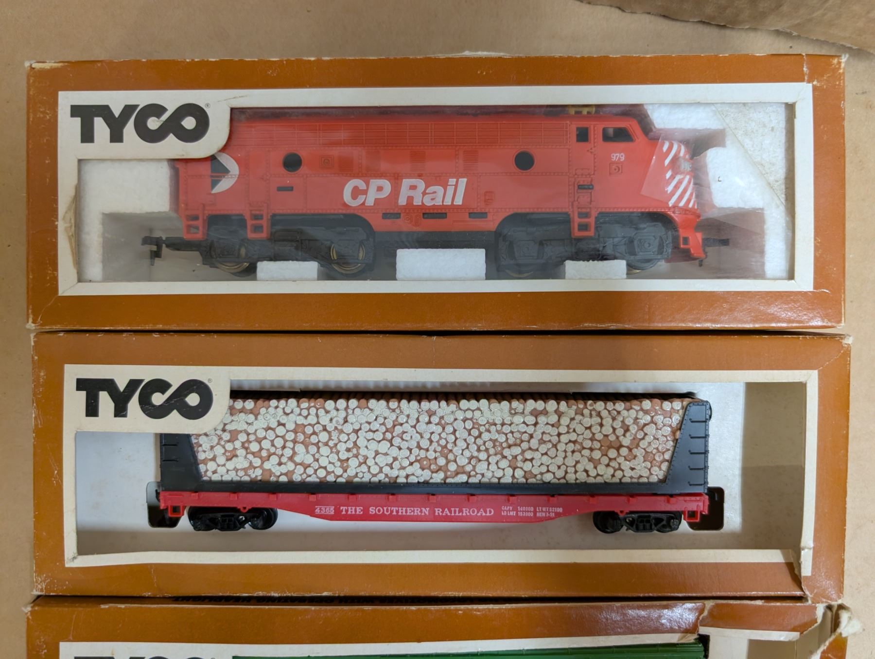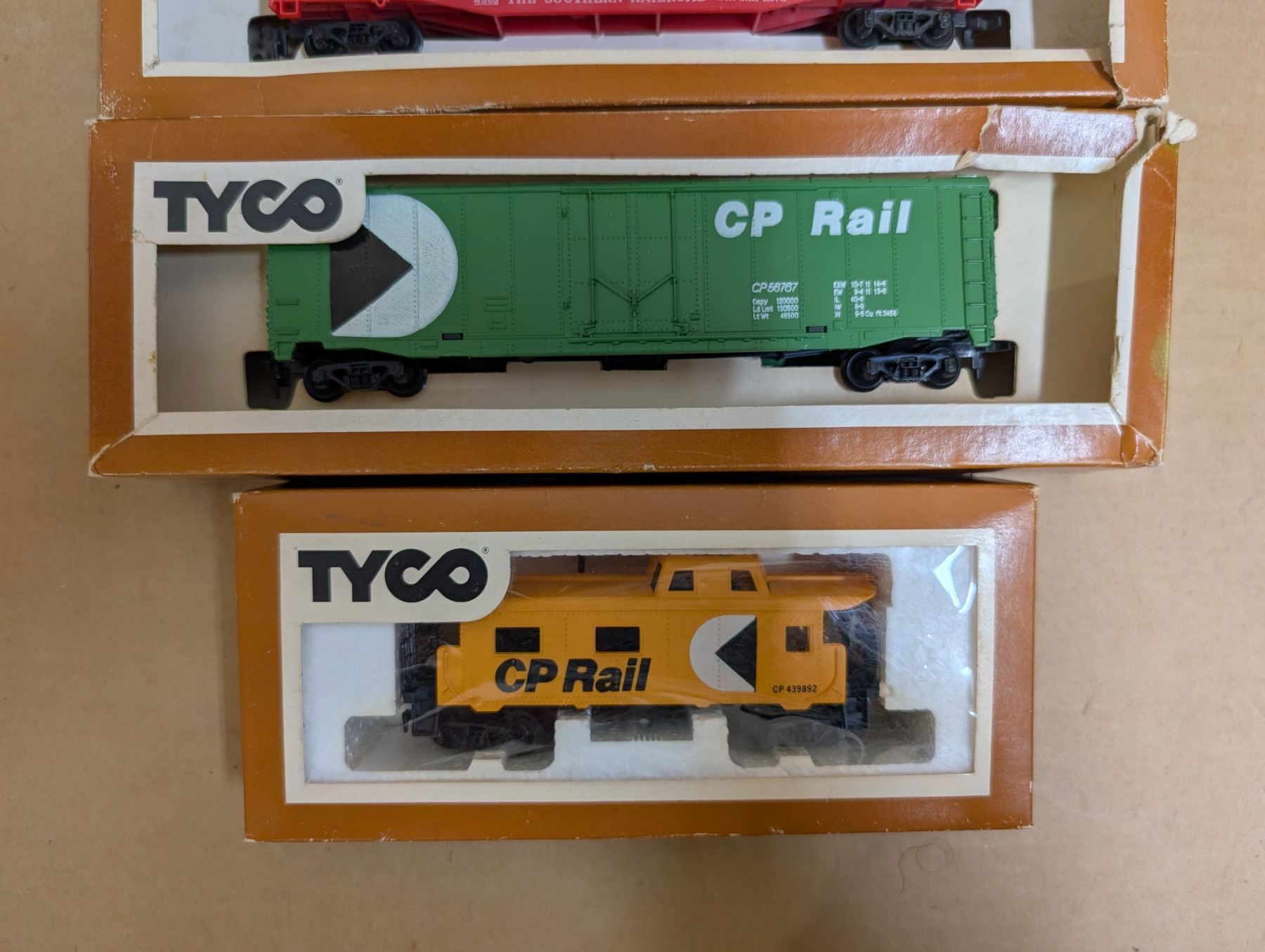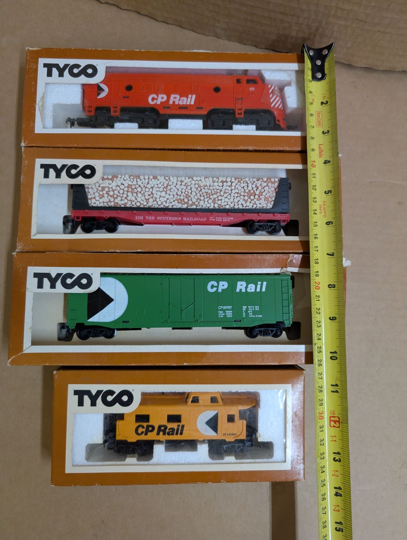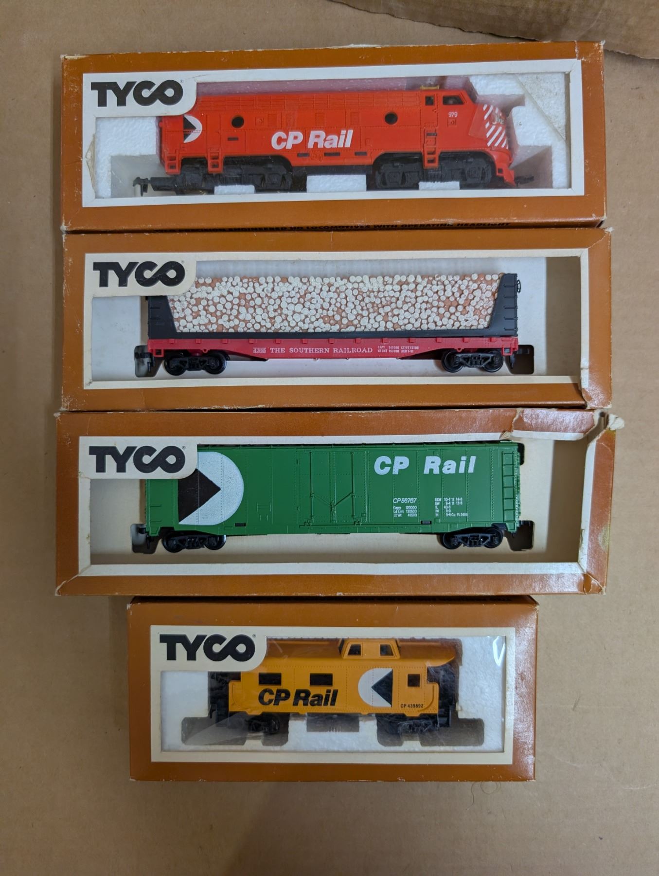 4 CP Tyco trains (1 engine, 3 rail cars)