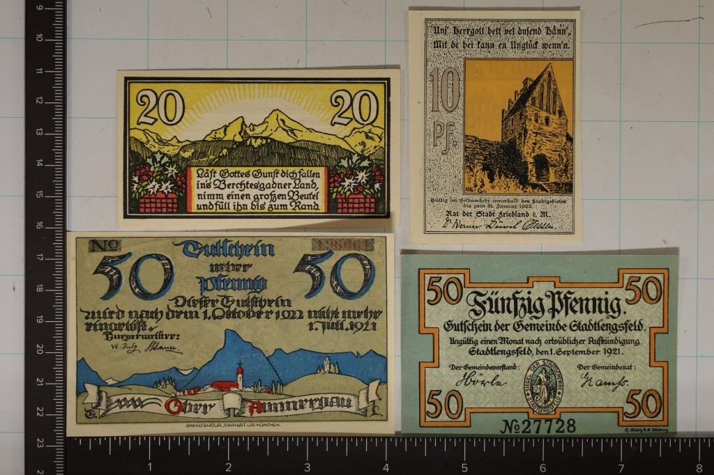 ALL DIFFERENT, ONE 10, ONE 20 AND TWO 50 PFENNIGS