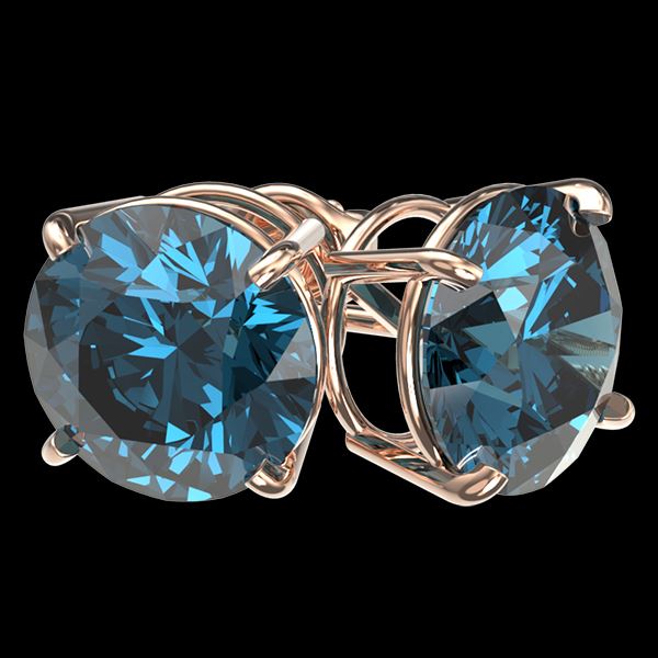 REF-679M9H -33138 ---- 4 CTW Certified Intense Blue SI Diamond Solitaire Stud Earrings 10K Rose Gold ---- Luxury Designer Brand Earring Appraised at $54,400 Certificate Number US33138 10k Rose gold, Earring Size is Larger, Earring measuring approx. Uniform, weighing in total approx. 2.7 grams. Made in the USA and is stamped 10k, Main stone 4 carat total weight containing 2 pieces of Intense Fancy Blue color with SI quality Round shape cut Diamond , Stone #2 carat total weight containing pieces of color with quality shape cut