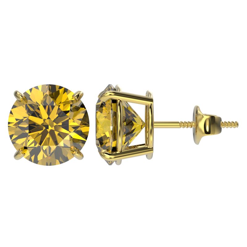 4 CTW Certified Intense Yellow SI Diamond Solitaire Stud Earrings 10K Yellow Gold ---- Luxury Designer Brand Earring Appraised Retail Price at $49,850 ---- SKU Number US33141 10k Yellow gold Earring Size is Larger, Earring measuring approx. Uniform, weighing in total approx. 2.7 grams. Made in the USA and is stamped 10k, Main stone 4.00 carat total weight containing 2 pieces of Intense Fancy Yellow color with SI quality Round shape cut Diamond , Stone #2 carat total weight containing pieces of color with quality shape cut