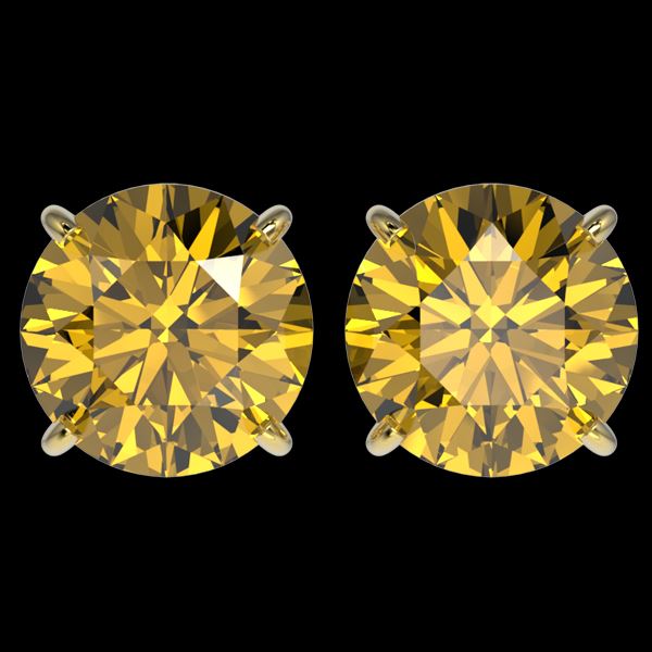 REF-930M2H -33141 ---- 4 CTW Certified Intense Yellow SI Diamond Solitaire Stud Earrings 10K Yellow Gold ---- Luxury Designer Brand Earring Appraised at $68,200 Certificate Number US33141 10k Yellow gold, Earring Size is Larger, Earring measuring approx. Uniform, weighing in total approx. 2.7 grams. Made in the USA and is stamped 10k, Main stone 4 carat total weight containing 2 pieces of Intense Fancy Yellow color with SI quality Round shape cut Diamond , Stone #2 carat total weight containing pieces of color with quality shape cut