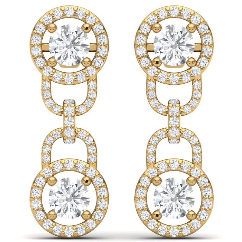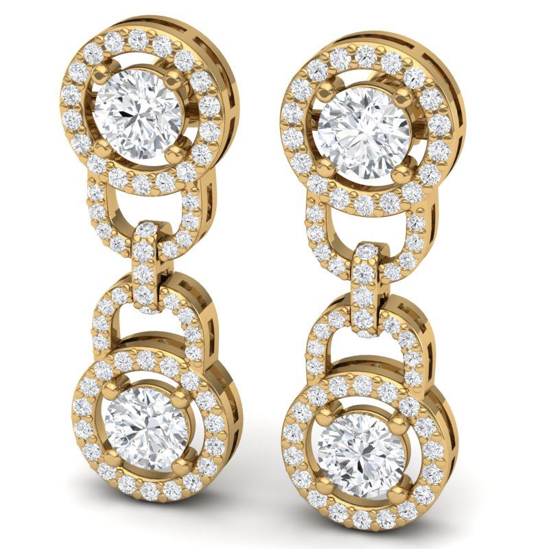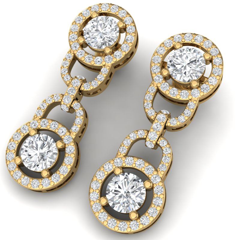 4 CTW Certified SI/I Diamond Halo Earrings 18K Yellow Gold ---- Luxury Designer Brand Earring Appraised Retail Price at $19,900 ---- SKU Number US40105 18K Yellow gold Earring Size is Inches long, Earring measuring approx. 10 mm x 28 mm, weighing in total approx. 7 grams. Made in the USA and is stamped 18K, Main stone 2.35 carat total weight containing 4 pieces of G-H color with SI/I quality Round shape cut Diamond , Stone #2 1.65 carat total weight containing 114 pieces of G-H color with SI/I quality Round shape cut