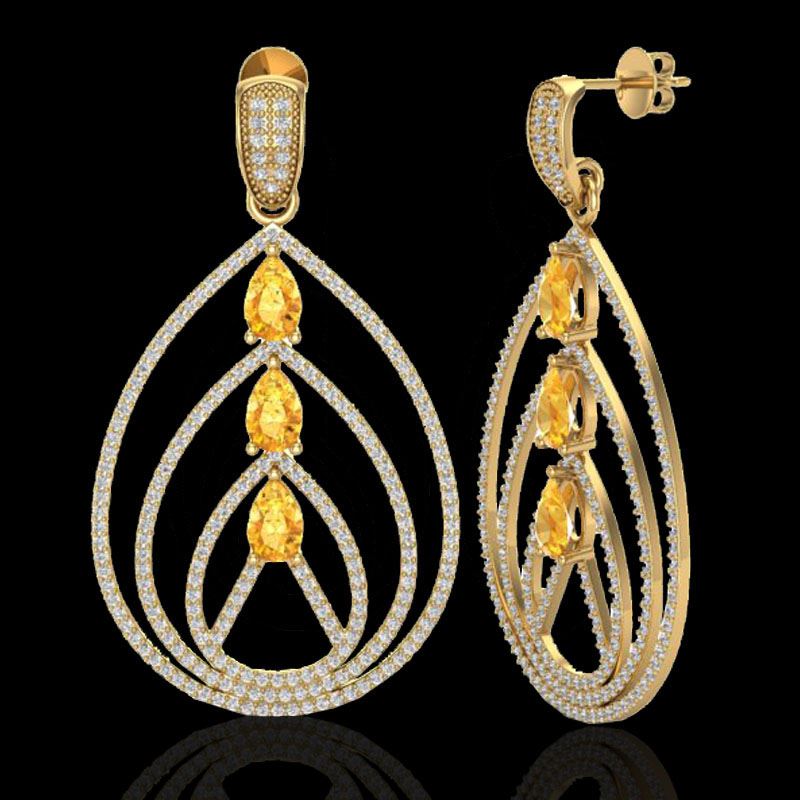 REF-307H3A -22454 ---- 4 CTW Citrine & Micro Pave VS/SI Diamond Earrings 18K Yellow Gold ---- Luxury Designer Brand Earring Appraised at $21,950 Certificate Number US22454 18k Yellow gold, Earring Size is 1 1/2 Inches, Earring measuring approx. 1 1/2" X 1" , weighing in total approx. 15 grams. Made in the USA and is stamped 18k, Main stone 1.5 carat total weight containing 6 pieces of Translucent Yellow color with AAA quality Pear shape cut Citrine , Stone #2 2.5 carat total weight containing 360 pieces of H-I color with VS/SI quality Round shape cut Diamond