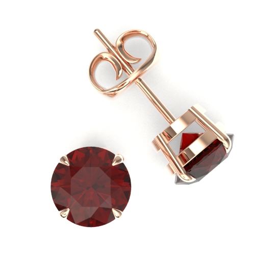 REF-23F3N -21822 ---- 4 CTW Garnet Designer Inspired Solitaire Stud Earrings 14K Rose Gold ---- Luxury Designer Brand Earring Appraised at $1,400 Certificate Number US21822 14k Rose gold, Earring Size is 8 Millimeter, Earring measuring approx. 8 mm x 8 mm, weighing in total approx. 2.5 grams. Made in the USA and is stamped 14k, Main stone 4 carat total weight containing 2 pieces of Saturated purplish Red color with AAA quality Round shape cut Garnet , Stone #2 carat total weight containing pieces of color with quality shape cut