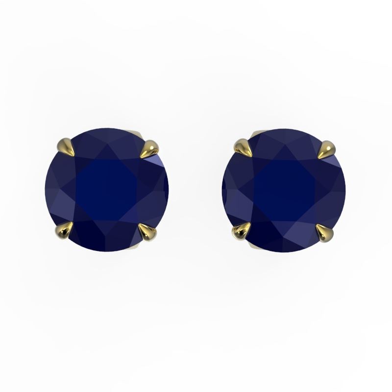 REF-32W9F -21841 ---- 4 CTW Sapphire Designer Inspired Solitaire Stud Earrings 18K Yellow Gold ---- Luxury Designer Brand Earring Appraised at $2,000 Certificate Number US21841 18k Yellow gold, Earring Size is 8 Millimeter, Earring measuring approx. 8 mm x 8 mm, weighing in total approx. 2.5 grams. Made in the USA and is stamped 18k, Main stone 4 carat total weight containing 2 pieces of Mid-Opaque-Deep Blue color with AAA quality Round shape cut Sapphire , Stone #2 carat total weight containing pieces of color with quality shape cut