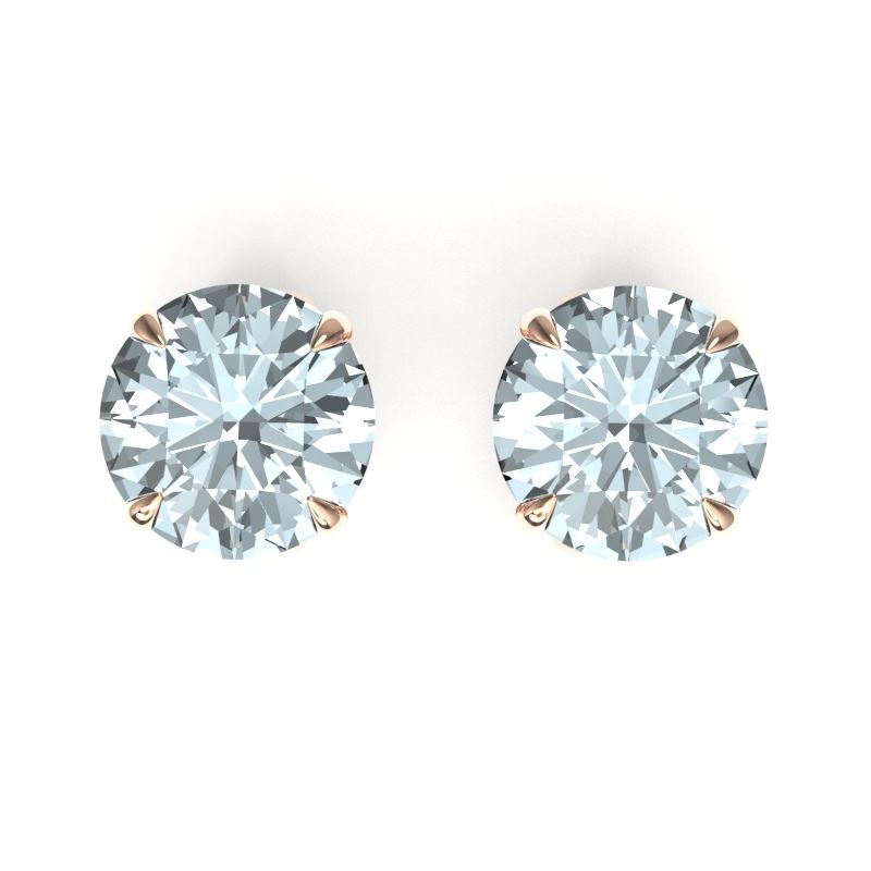 REF-23M3H -21845 ---- 4 CTW Sky Blue Topaz Designer Inspired Solitaire Stud Earrings 14K Rose Gold ---- Luxury Designer Brand Earring Appraised at $1,500 Certificate Number US21845 14k Rose gold, Earring Size is 8 Millimeter, Earring measuring approx. 8 mm x 8 mm, weighing in total approx. 2.5 grams. Made in the USA and is stamped 14k, Main stone 4 carat total weight containing 2 pieces of Translucent Sky Blue color with AAA quality Round shape cut Topaz , Stone #2 carat total weight containing pieces of color with quality shape cut