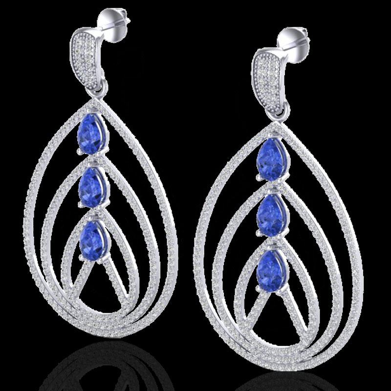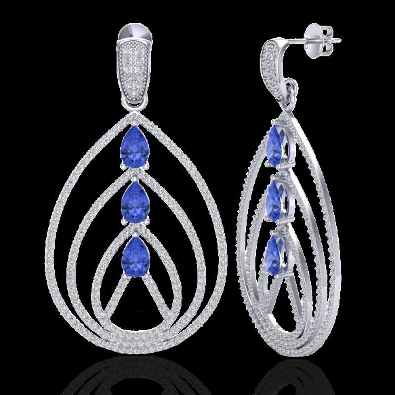 4 CTW Tanzanite & Micro Pave VS/SI Diamond Designer Earrings 18K White Gold ---- Luxury Designer Brand Earring Appraised Retail Price at $19,950 ---- SKU Number US22461 18k White gold Earring Size is 1 1/2 Inches, Earring measuring approx. 1 1/2" X 1" , weighing in total approx. 13 grams. Made in the USA and is stamped 18k, Main stone 1.50 carat total weight containing 6 pieces of Intense Violet Blue color with AAA quality Pear shape cut Tanzanite , Stone #2 2.5 carat total weight containing 360 pieces of H-I color with VS/SI quality Round shape cut