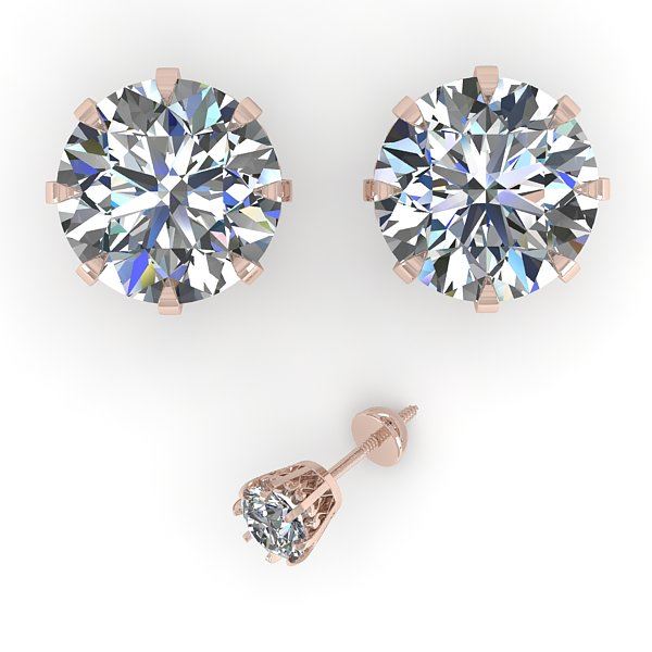 4 CTW VS/SI Diamond Stud Solitaire Earrings 18K Rose Gold ---- Luxury Designer Brand Earring Appraised Retail Price at $113,600 ---- SKU Number US35705 18K Rose gold Earring Size is Larger, Earring measuring approx. Uniform, weighing in total approx. 5 grams. Made in the USA and is stamped 18K, Main stone 4 carat total weight containing 2 pieces of I-J color with VS/SI quality Round shape cut Diamond , Stone #2 carat total weight containing pieces of color with quality shape cut