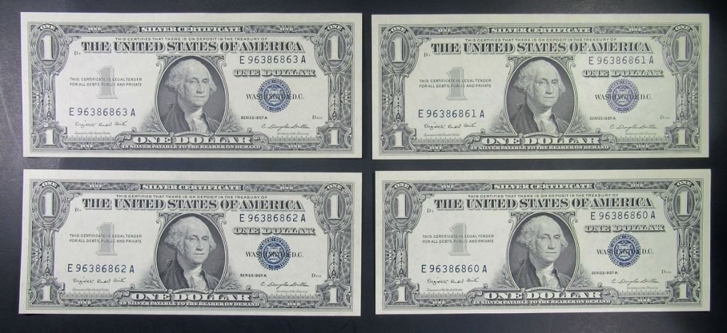 9- 1935 $1 SILVER CERTS CONSEQUTIVE NOTES CU'S