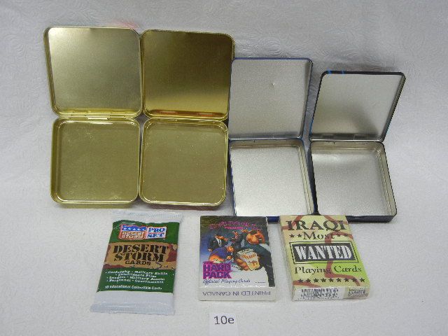 4 Camel Cigarette Tins, Camel Playing Cards, Desert Storm Pro Set, and Iraqi Most Wanted Playing Car