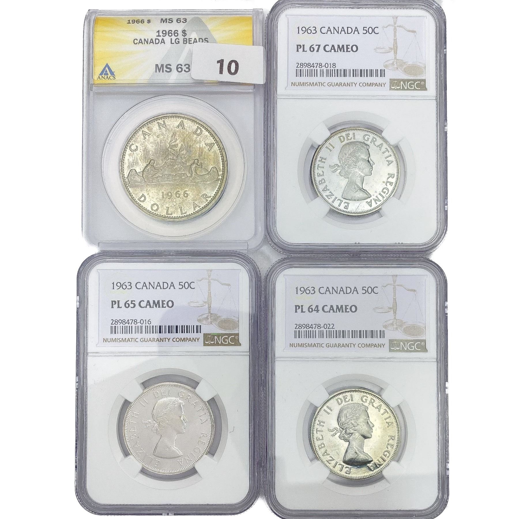 (4) Canada Silver Coinage NGC/ANACS MS/PR (1966, (